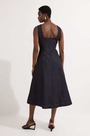 Soft Tailored Waterfall Hem High Neck Midi Dress