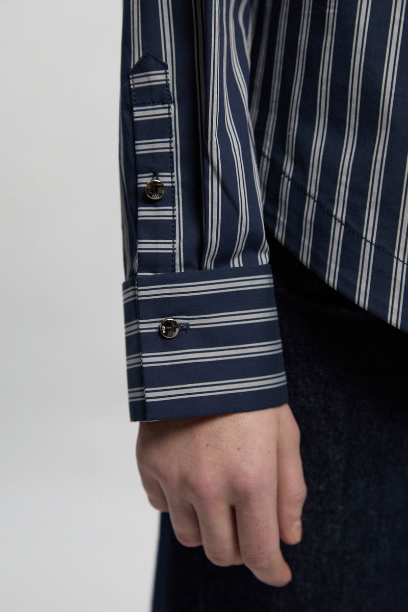 Stripe Boxy Cotton Placket Detail Woven Shirt
