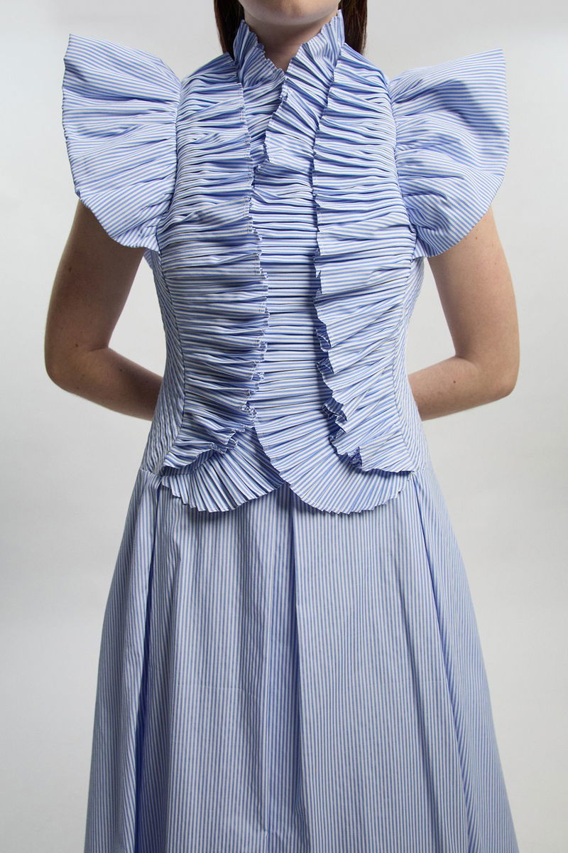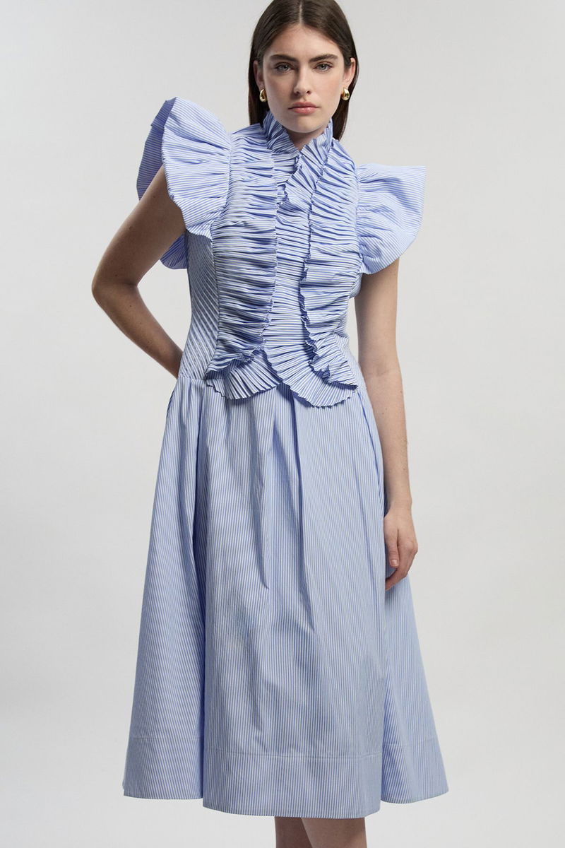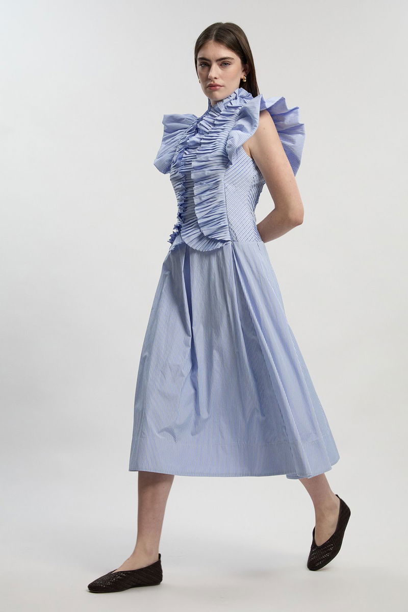 Stripe Pleated Ruffle Sleeve Woven Maxi Dress