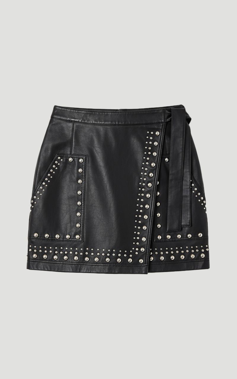 Studded Leather Wrap Mini Skirt