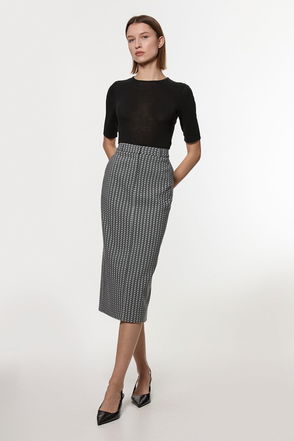 Experience updated tailoring essentials with this midi skirt, with a fitted silhouette and a high waistline, creating a universally flattering fit. The real suede fabric adds texture and unique detail to the look, and this piece can easily be paired with a crop top for a day to night look, then with a button up shirt for a co-ordinating occasion look.