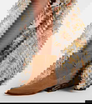Suede mid calf slouch heeled boot.
