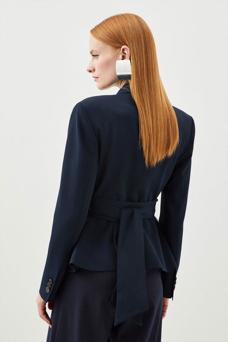 Expertly tailored for flattering yet smart appeal, this blazer is crafted from premium crepe. Featuring a notched collar, long sleeves and a waist detail that cinches the silhouette. Pair with tailored trousers for a smart ensemble.