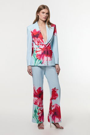 Make a captivating entrance at your next formal occasion with this show-stopping tailored jacket from Karen Millen. The bold floral placement print transforms this piece from classic tailoring to artistic statement. Style as seen with wide-leg trousers and a simple top to let the jacket command attention, or wear over a sleek dress for wedding season sophistication. The double-breasted fastening and structured crepe fabric create a beautifully defined silhouette, whilst the full skirted design adds dramatic flair with every movement. Perfect for summer race days, garden parties or evening events where you wish to project confidence and elegance. The versatile design works beautifully as a lightweight outerwear option or as the centrepiece of your formal ensemble.