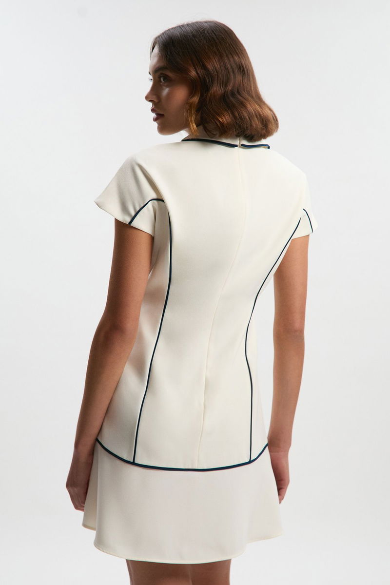 Tailored Crepe Tipped Tailored Mini Shirt Dress