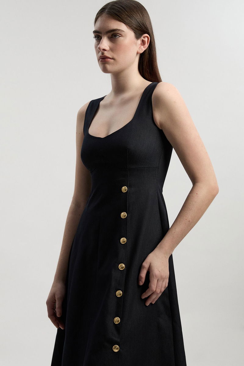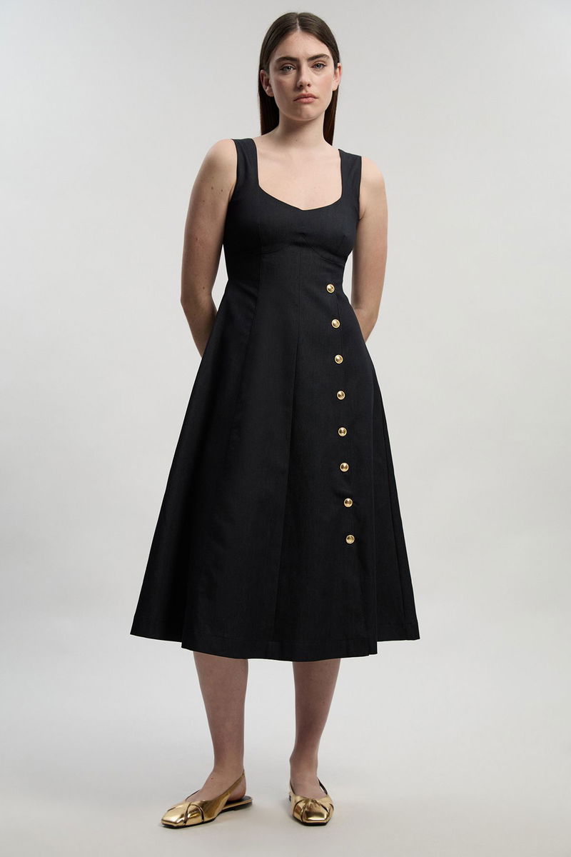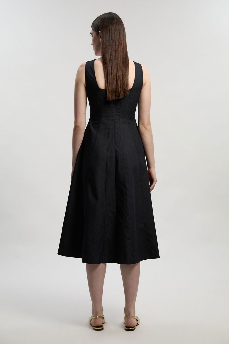 Tailored Denim Sleeveless Full Skirted Midi Dress