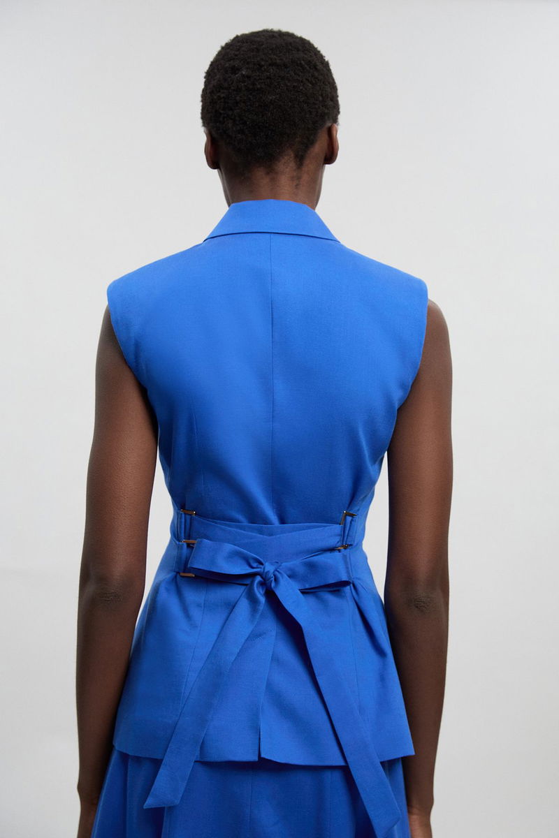 Tailored Linen Corset Back Detail Button Front Waistcoat