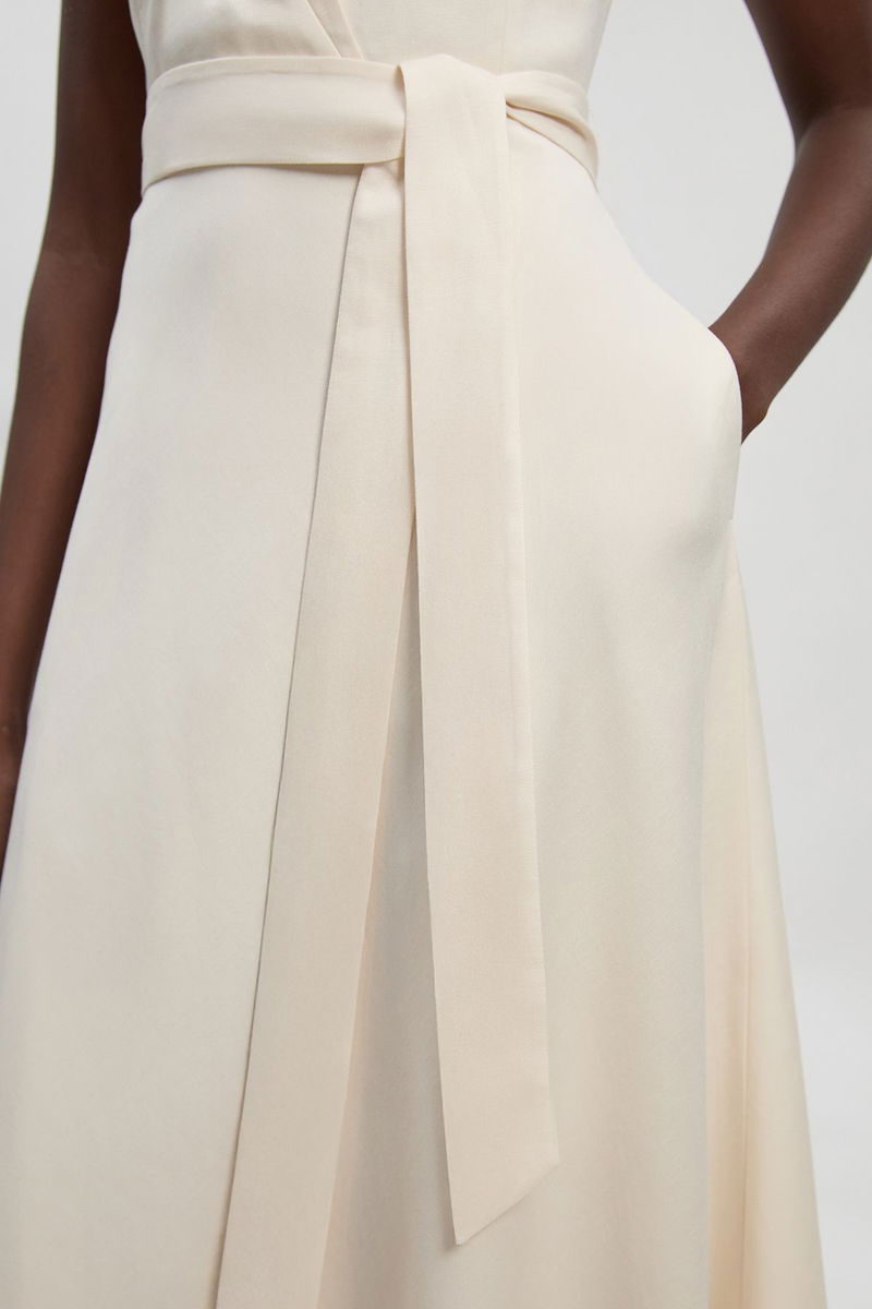 Tailored Linen Wrap Tie Waisted Maxi Dress