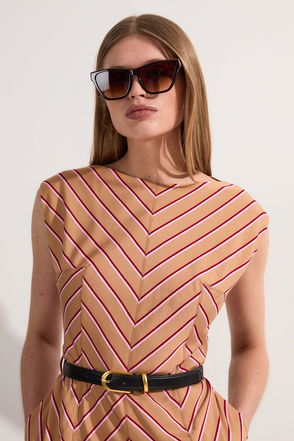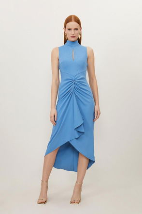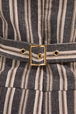 Tailored Stripe Linen Strappy Asymmetric Hem Midi Dress