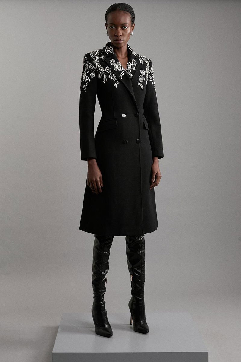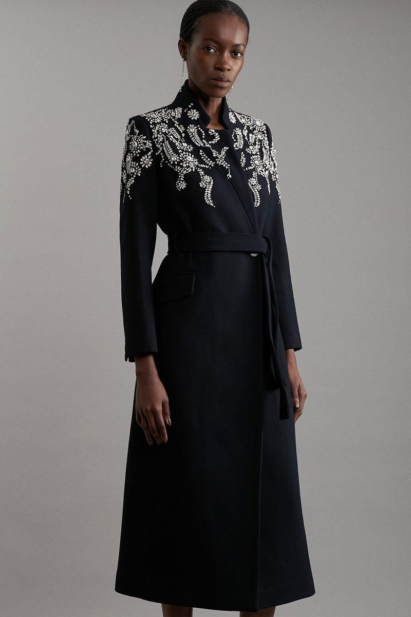 Tailored Wool Embellished Double Breasted Midi Coat