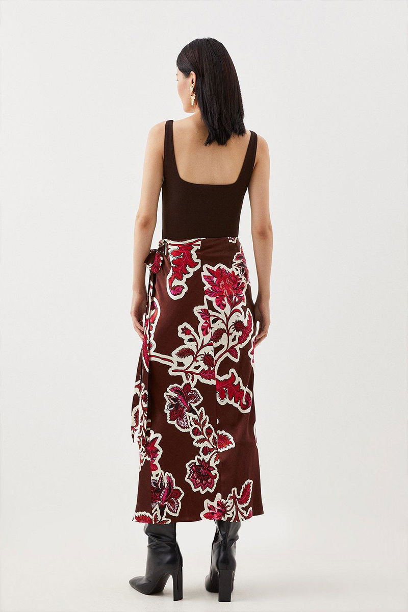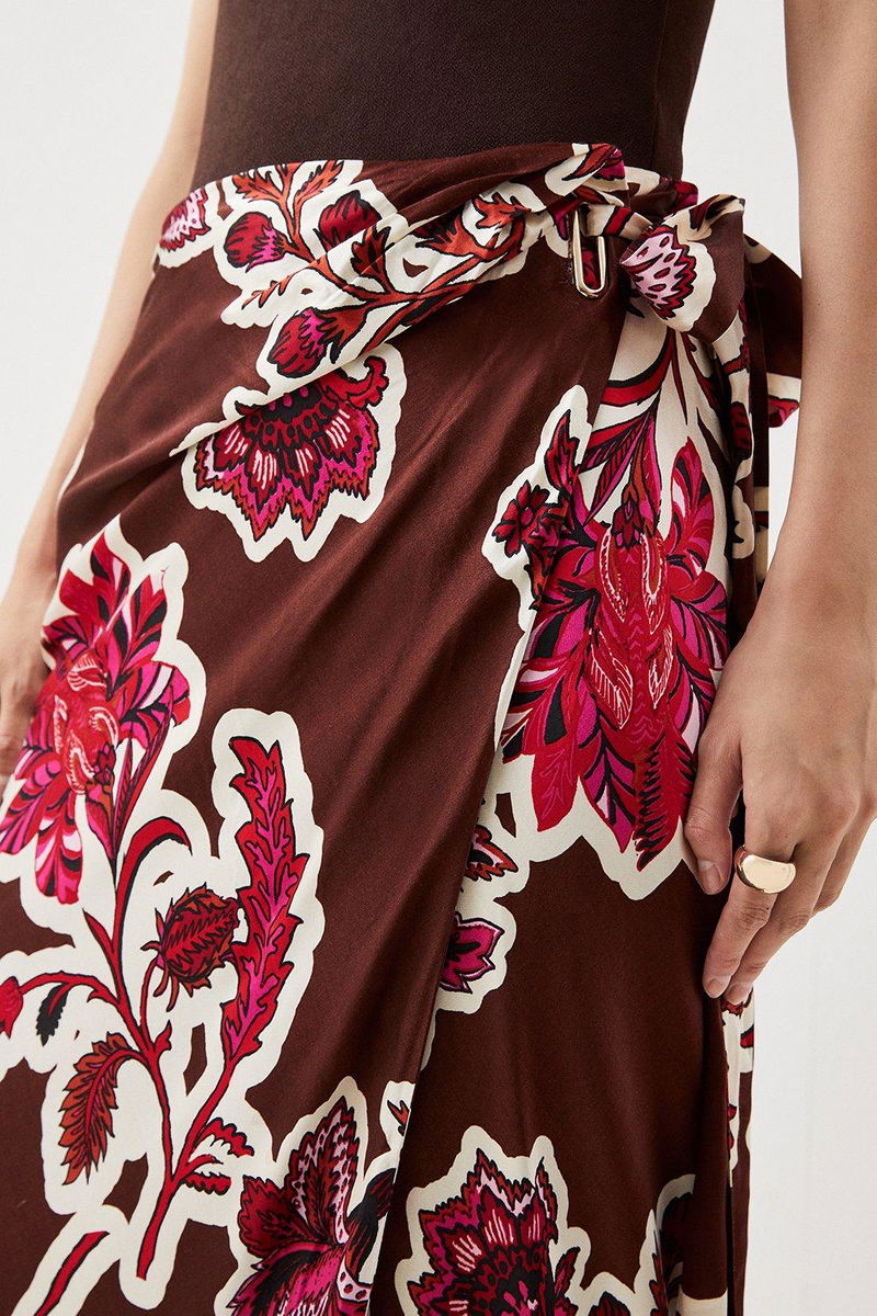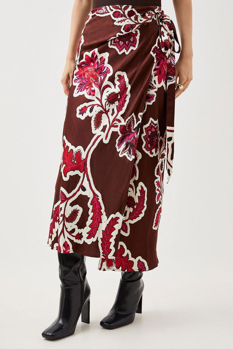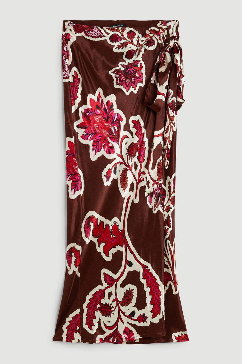 Adorned with a captivating Batik print, this skirt adds a vibrant touch to colourful wardrobes. Gleaming satin fabrics adds a touch of charm and timeless appeal while a maxi length with a wrap style and tie waist exude laid back elegance.
