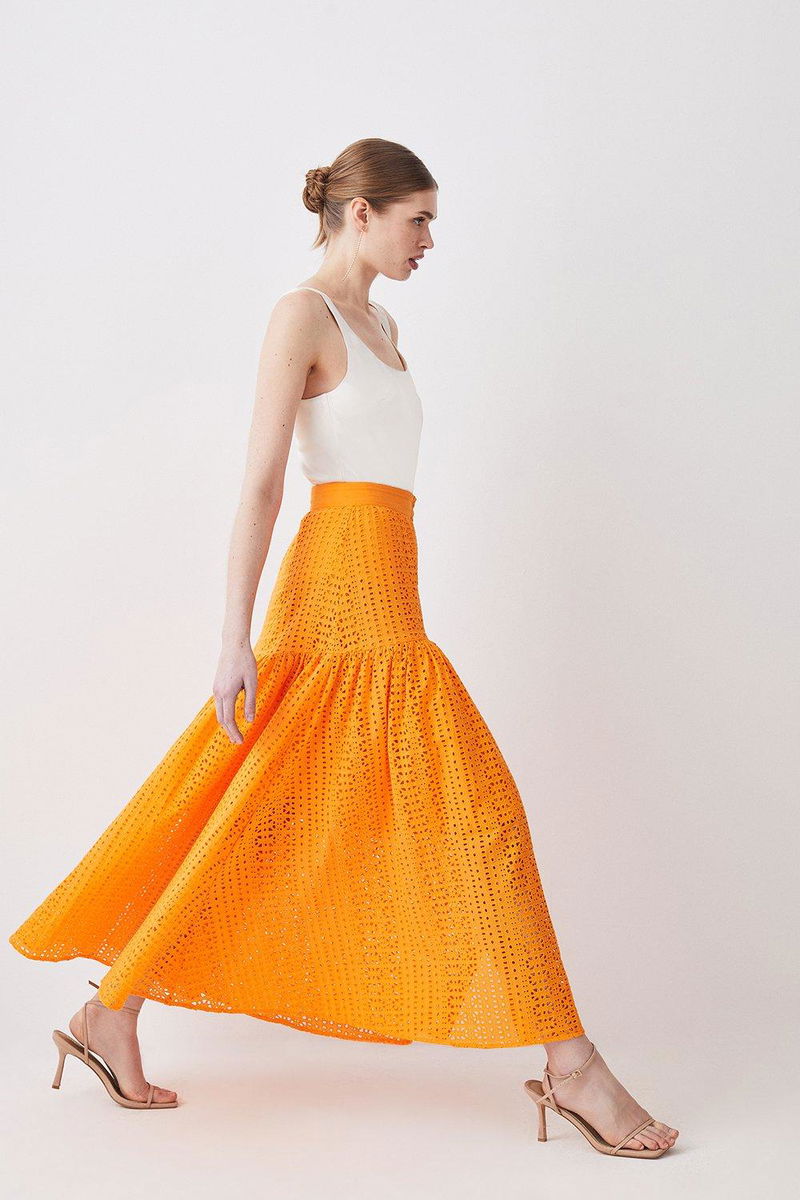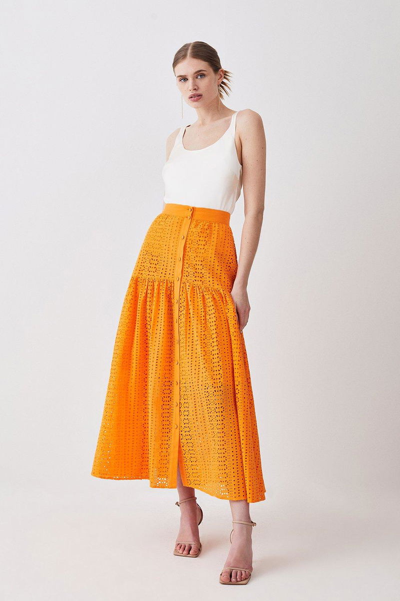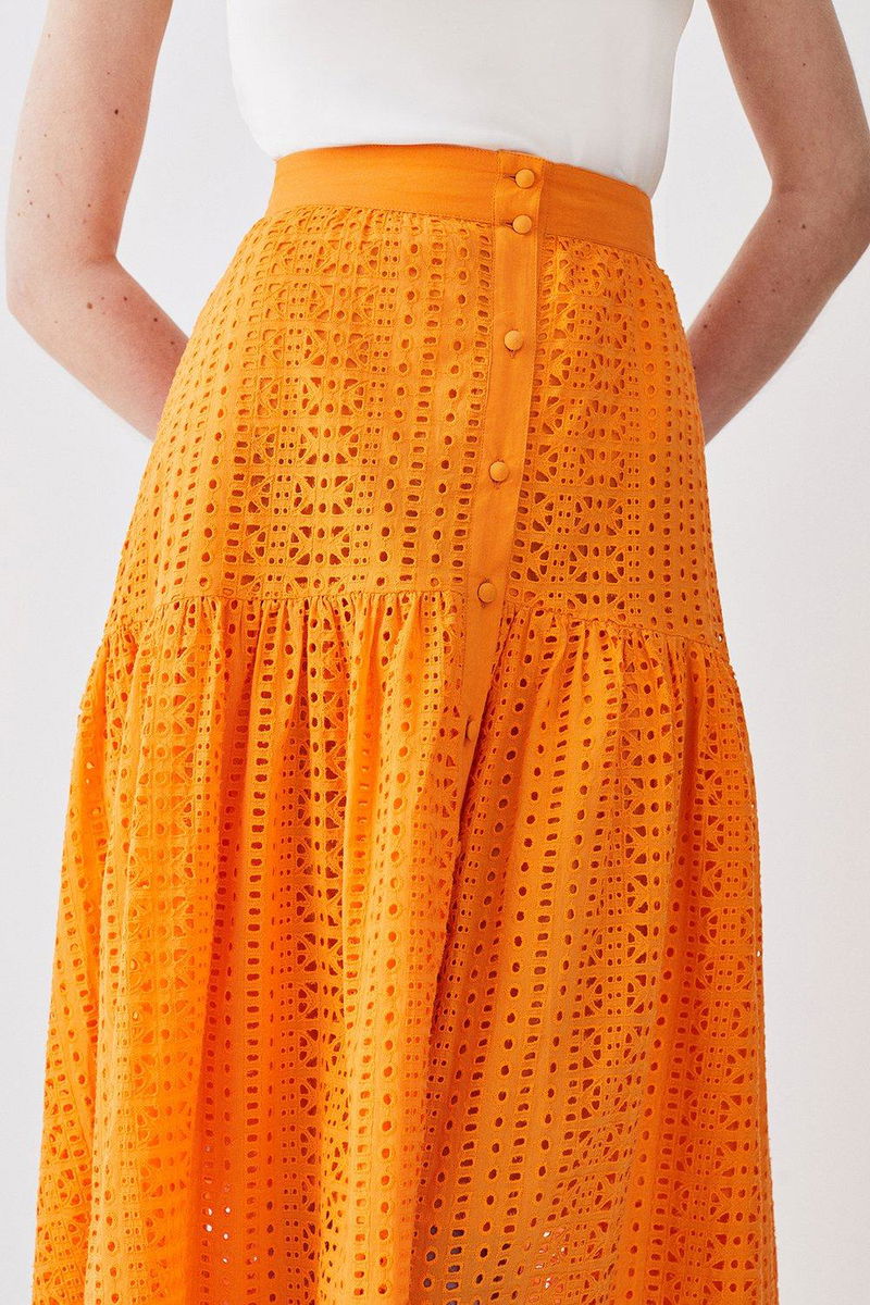 Imbued with romantic flair, this midi skirt effortlessly elevates summer ensembles. Crafted with cotton broderie for artisanal appeal, this piece is lightweight and breathable. Style this skirt with sandals and a cami top for an elegant everyday look.
