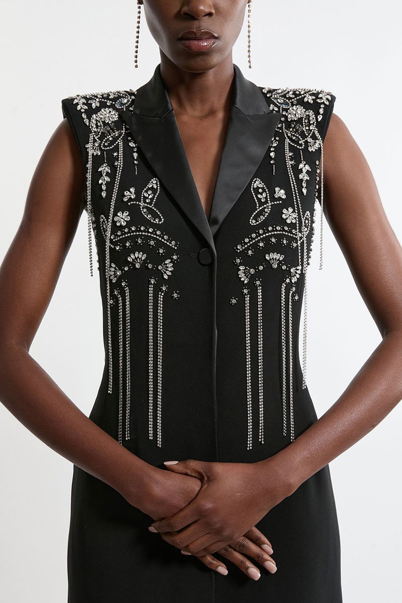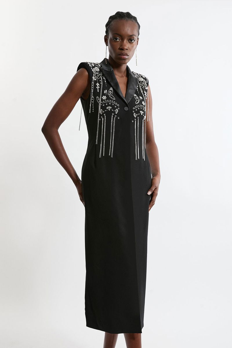 Tall Embellished Detail Plunge Collared Woven Maxi Dress
