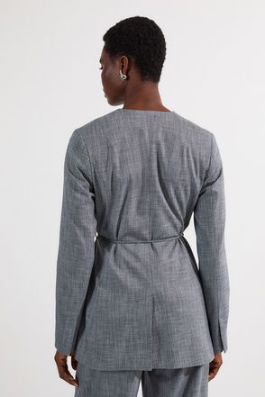 Elegantly crafted from lightweight linen, this blazer is tailored to a longline length, with a waist-cinching tie belt for a flattering fit. Finished with a plunge neckline and flap pockets, this piece is ready to elevate every formal ensemble.
