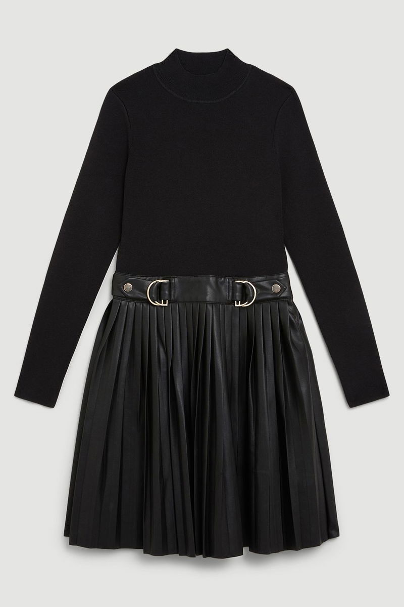 Tall Knitted Skater Dress With Pu Detailing