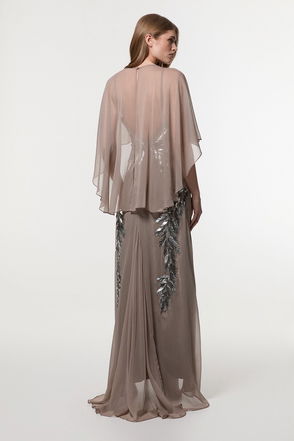 Tall Pleated Cape Sleeve Low Back Maxi Dress.