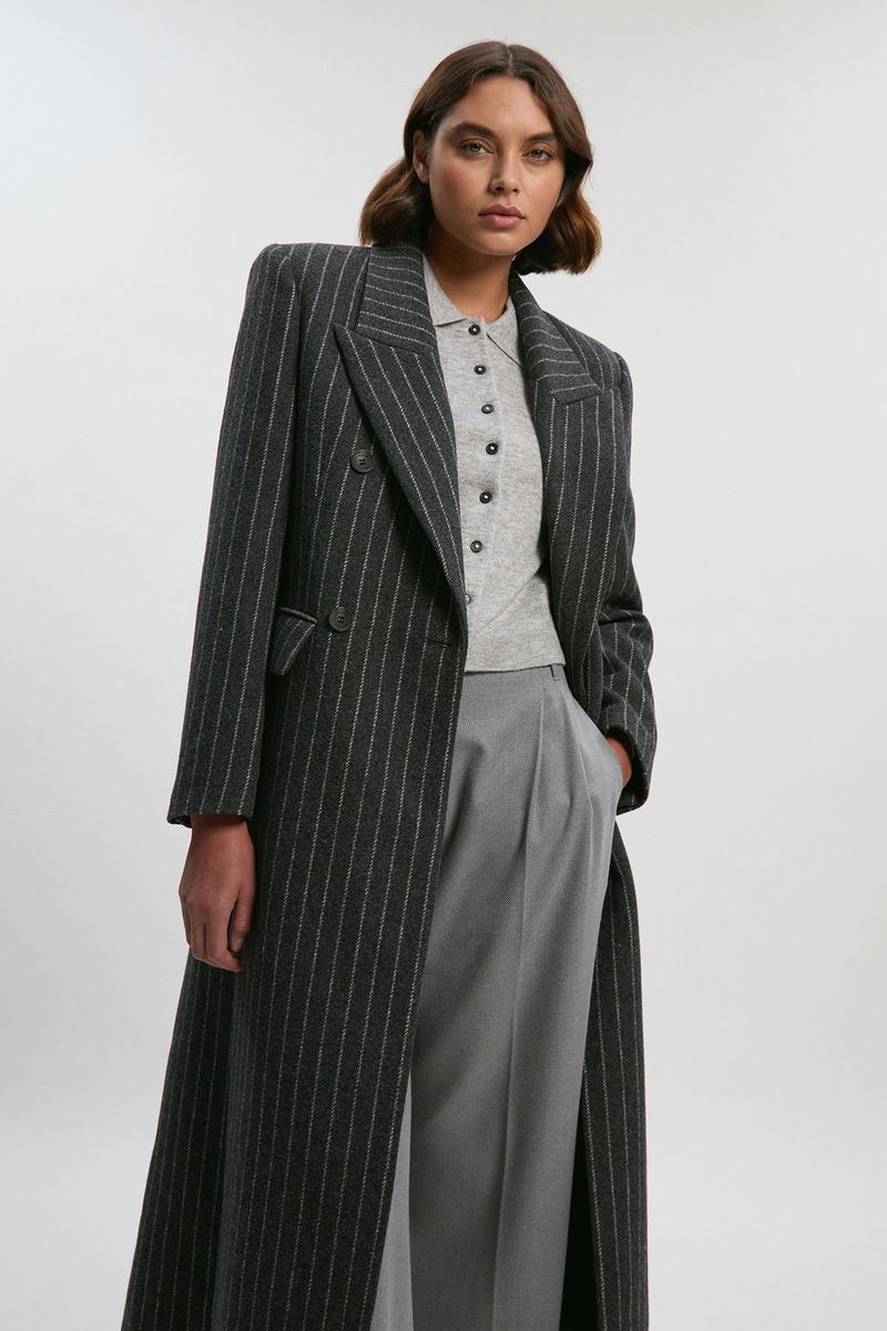 Tall Wool Pinstripe Oversized Double Breasted Tailored Maxi Coat