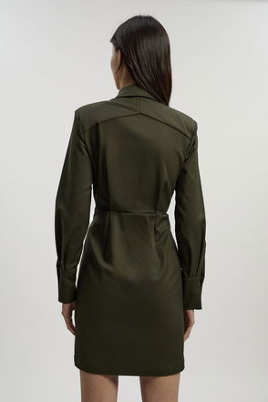 Techno Cotton Woven Short Shirt Dress With Gold Clasp.