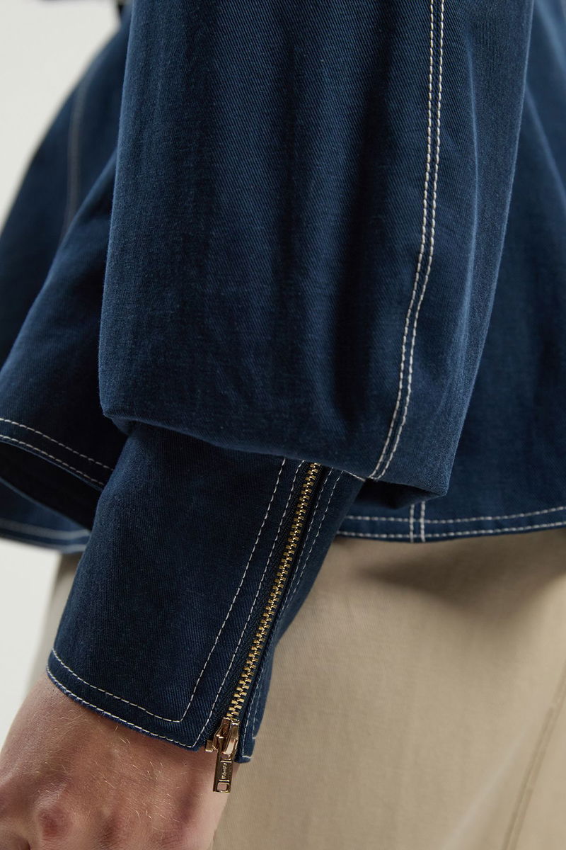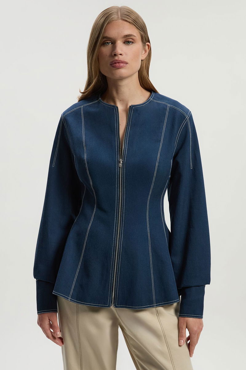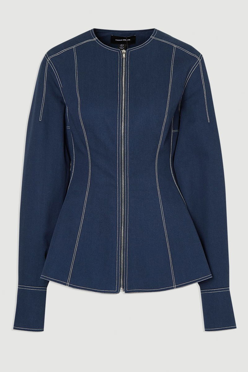 Tencel Cotton Contrast Stitch Zip Front Woven Jacket