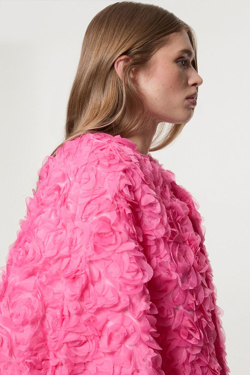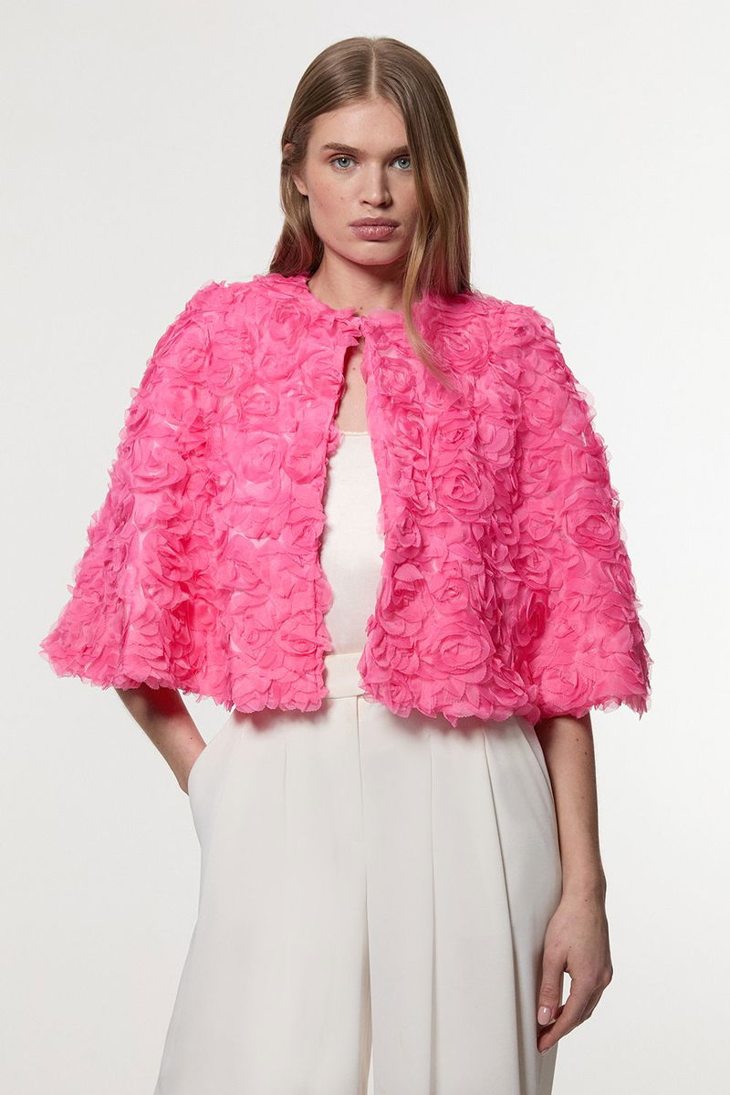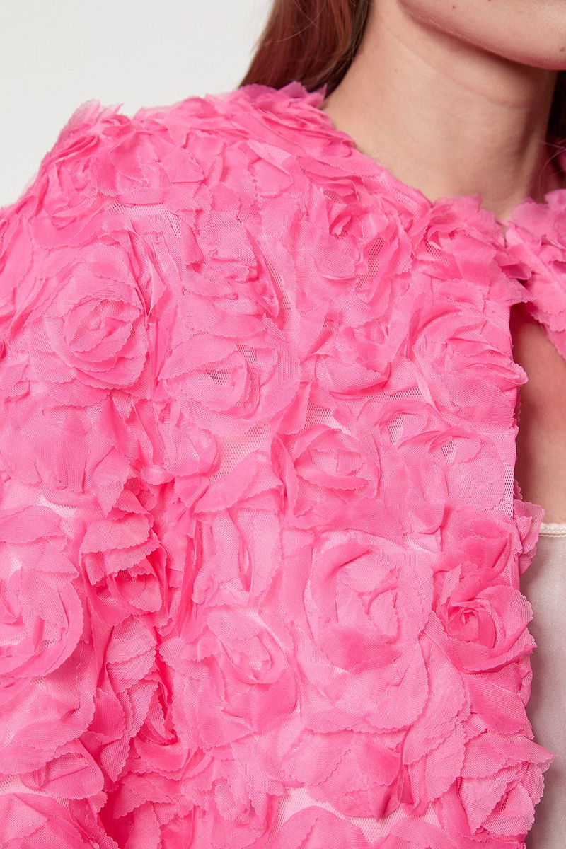 Textured Rosette Woven Cropped Cape