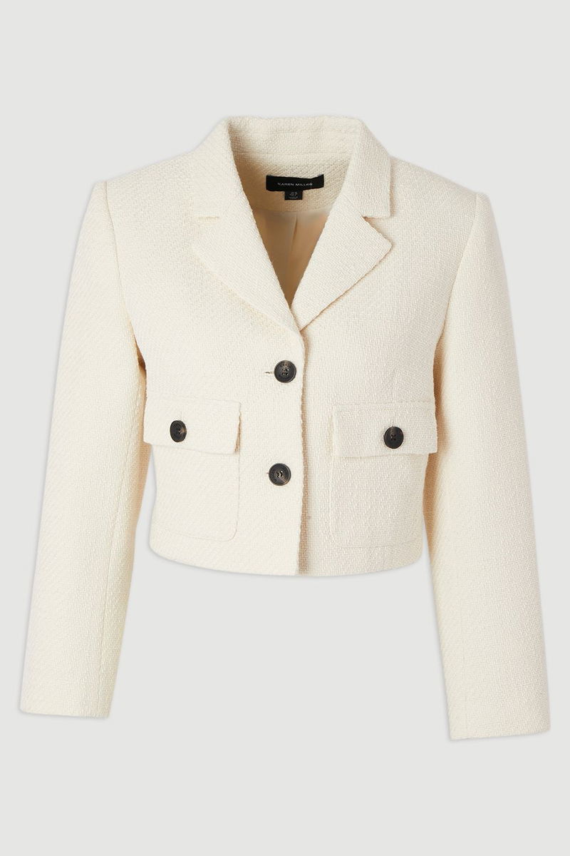 Textured Tweed Pocket Front Tailored Cropped Jacket