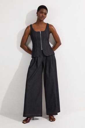 Introducing The Founder: Evolution, a third collection with our eponymous founder, Karen Millen. Welcoming in the spring season, these interchangeable staples will elevate the everyday with minimal effort. An ode to ‘70s style, this long sleeve jumpsuit is crafted from tailored denim. Featuring a classic collar, pocket detailing and a polished button down effect for utility-inspired elements and finished with belt loops for an adjustable fit. Pair with kitten heels for laidback elegance.