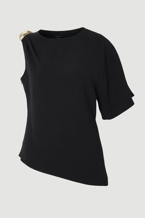 The perfect choice for going from day to night, this top features a fit that skims the curves, and structured shoulders embellished with metallic beading.