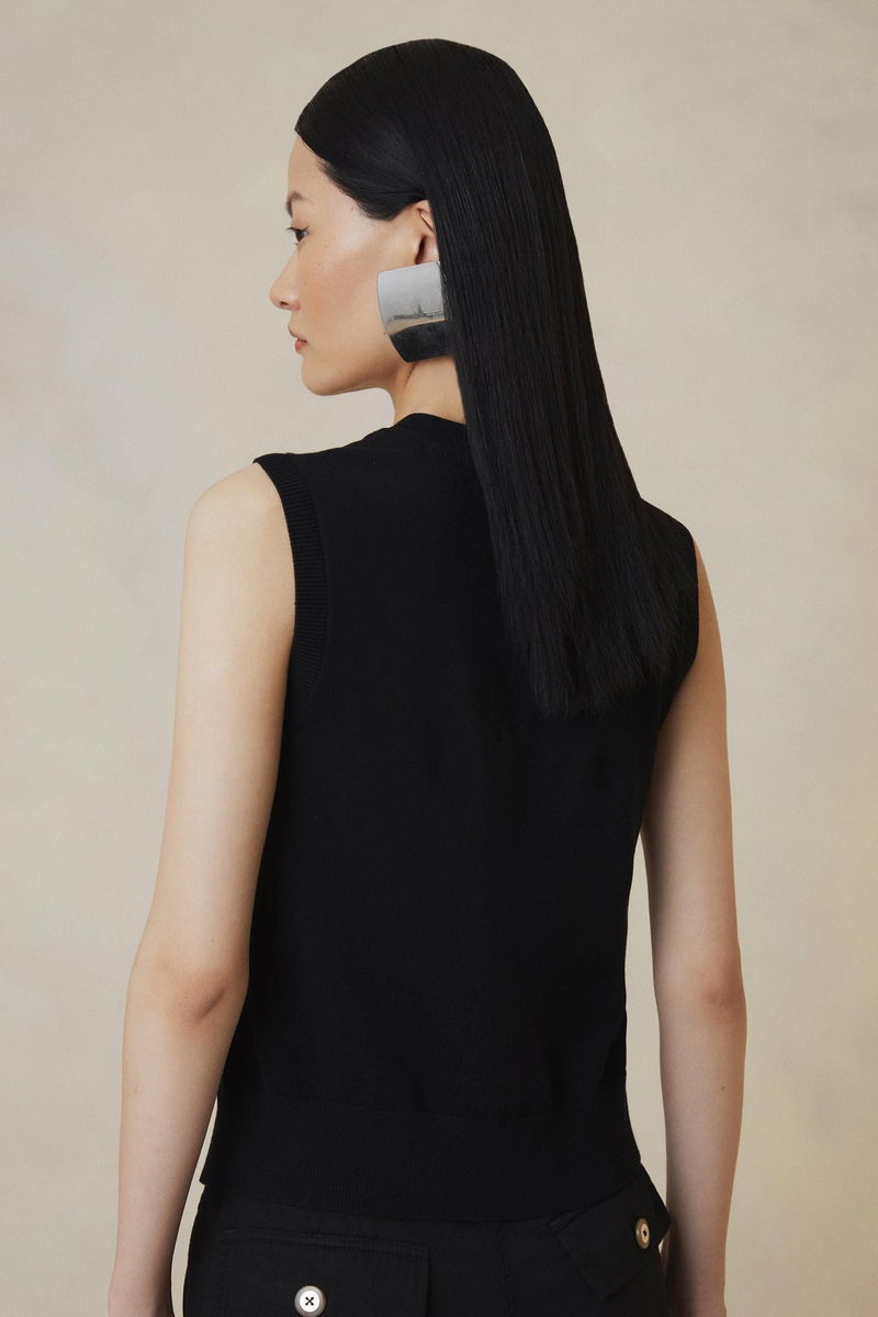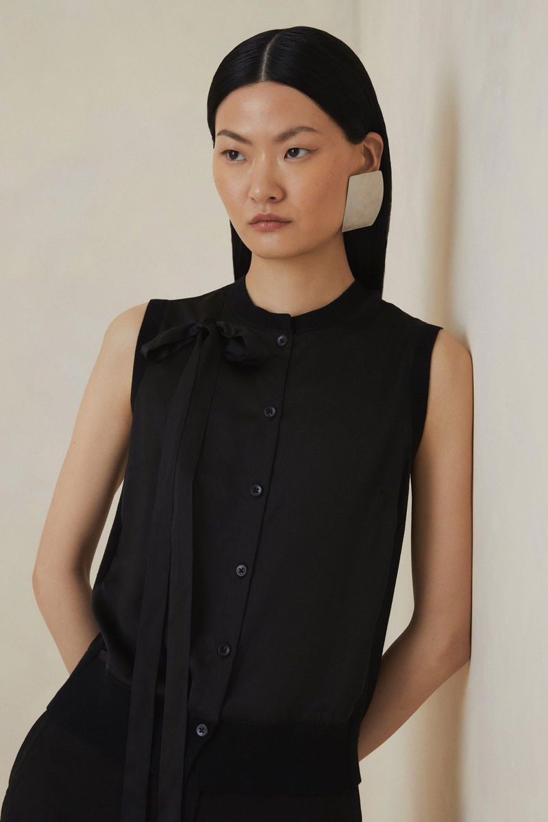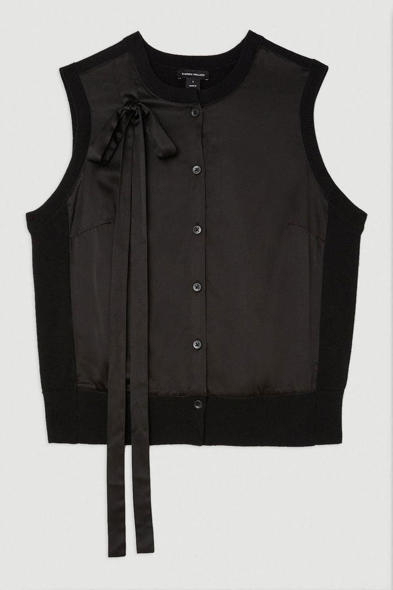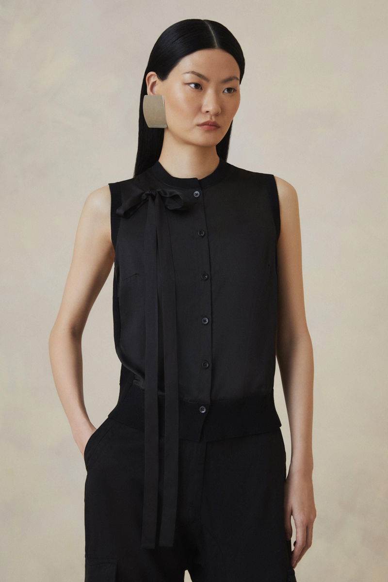 The Founder Linen Blend Satin Bow Detail Knit Vest