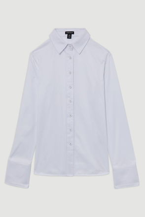 Presenting The Founder: Elevated collection, in collaboration with Karen Millen OBE. Enjoy Karen Millen legacy designs, with timeless silhouettes and classic details that are forever on-trend and ready to wear. Feel elevated in our classic, plus size button up shirt, featuring a relaxed fit, and button detailing down the front. This piece can be easily paired with anything from tailored trousers to denim jeans for looks that go from office days to drinks receptions.