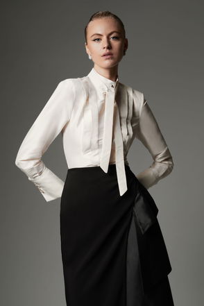 Sophisticated enough for work, bold enough for weekend. This shirt is accented with our in-house designed tiger print. Made with a super-smart spread collar, it'll go from desk to dinner with a quick swipe of lipstick.