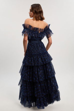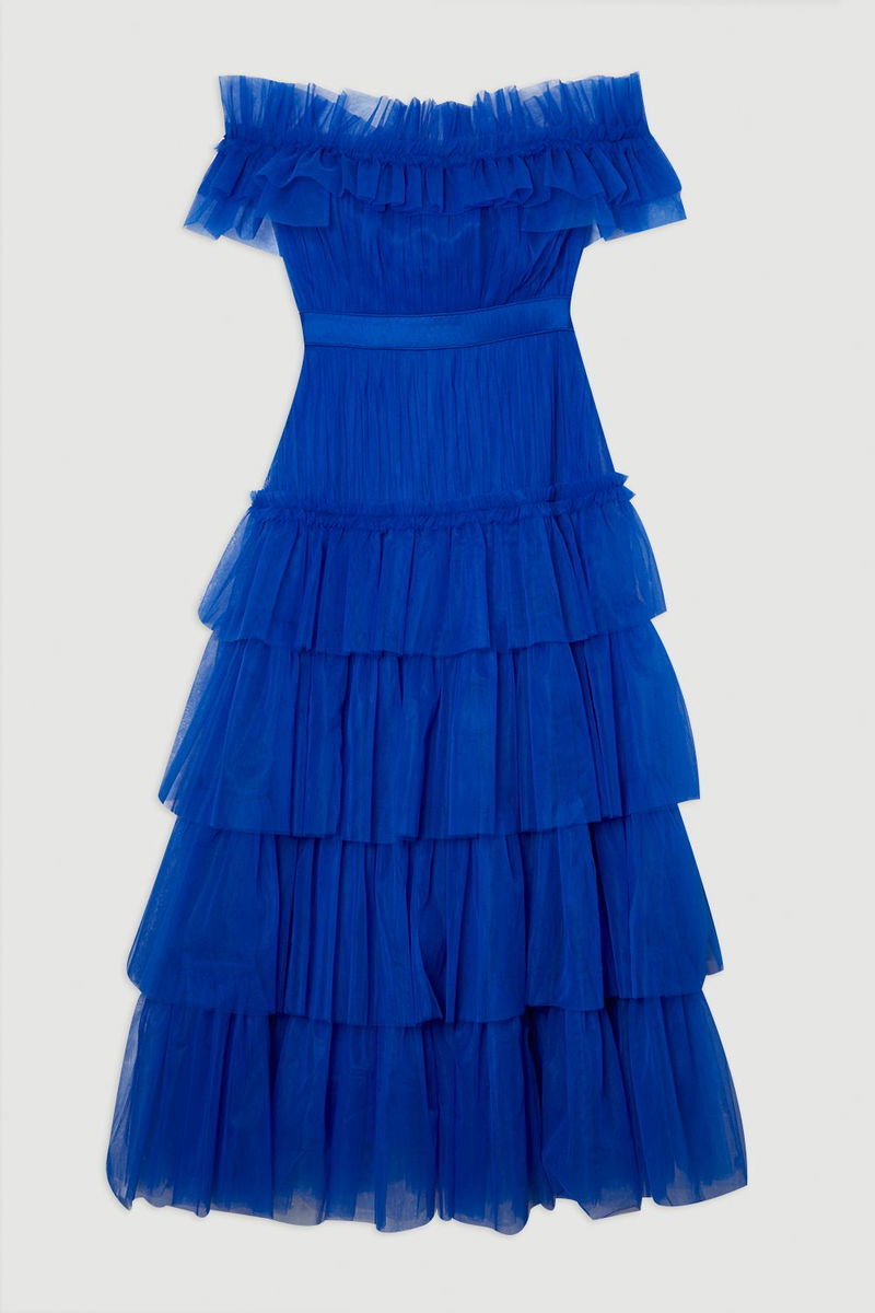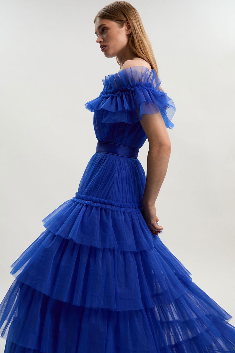 Tulle Layered Off The Shoulder Maxi Dress