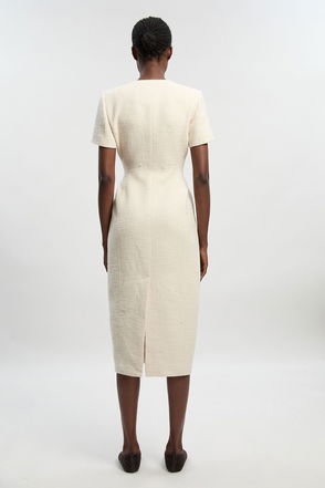Tweed belted pencil dress.