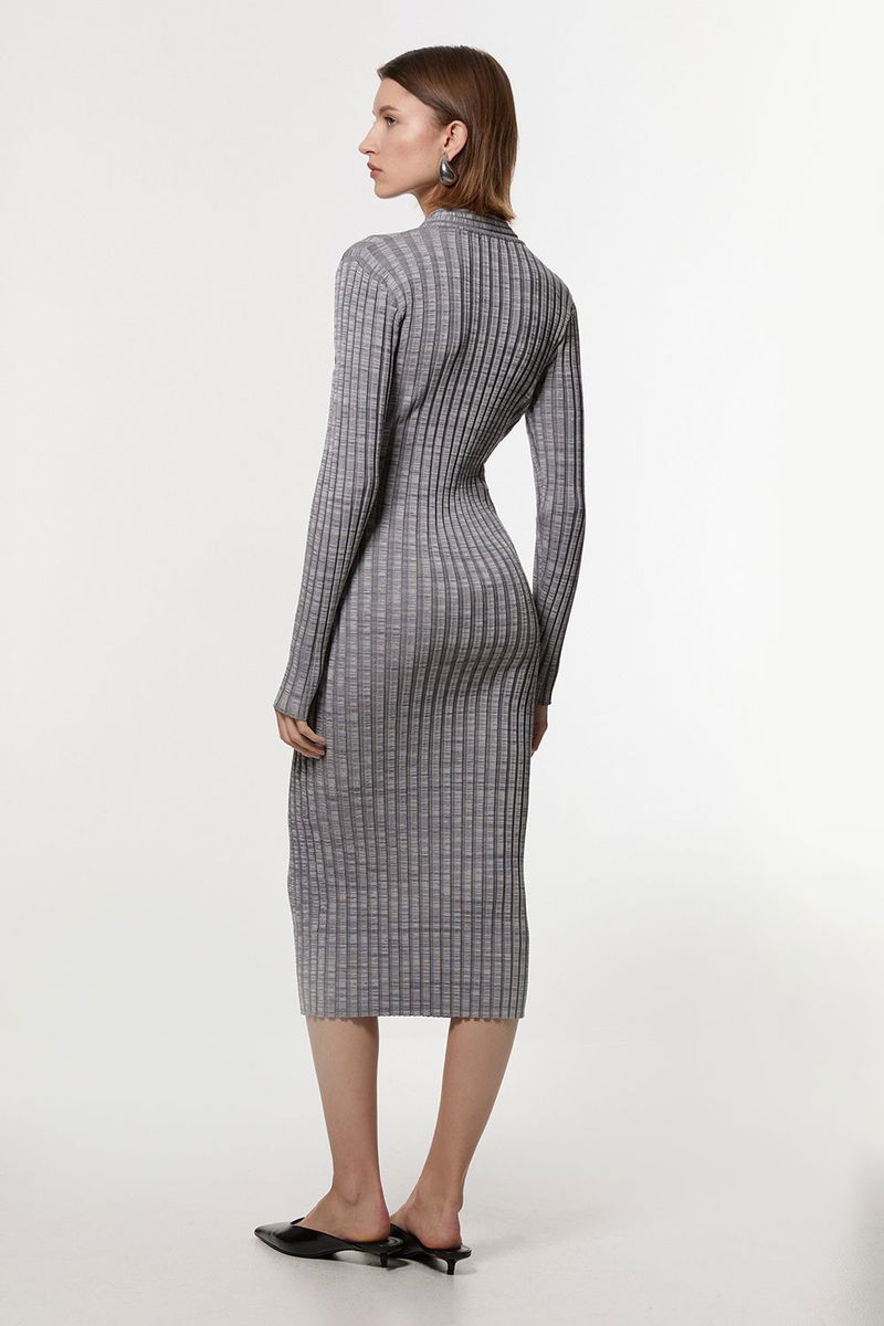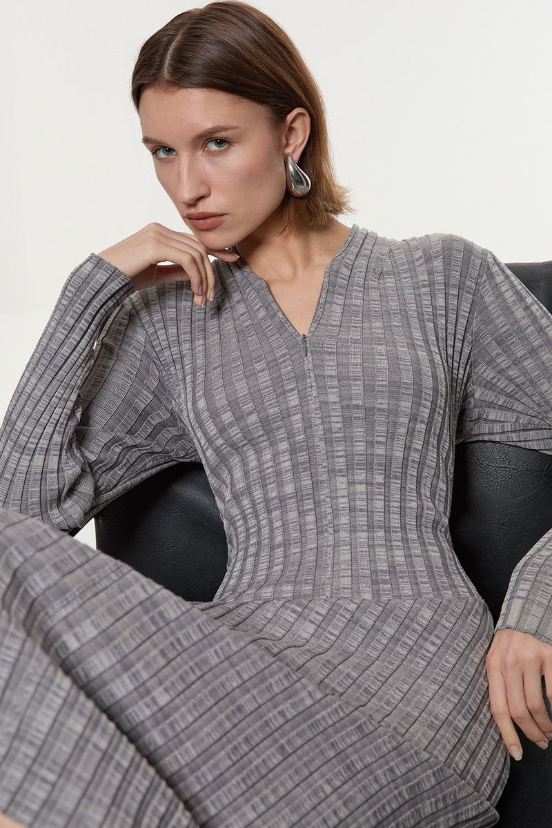 Twist Yarn Zip Detail Figure Form Ribbed Knitted Dress