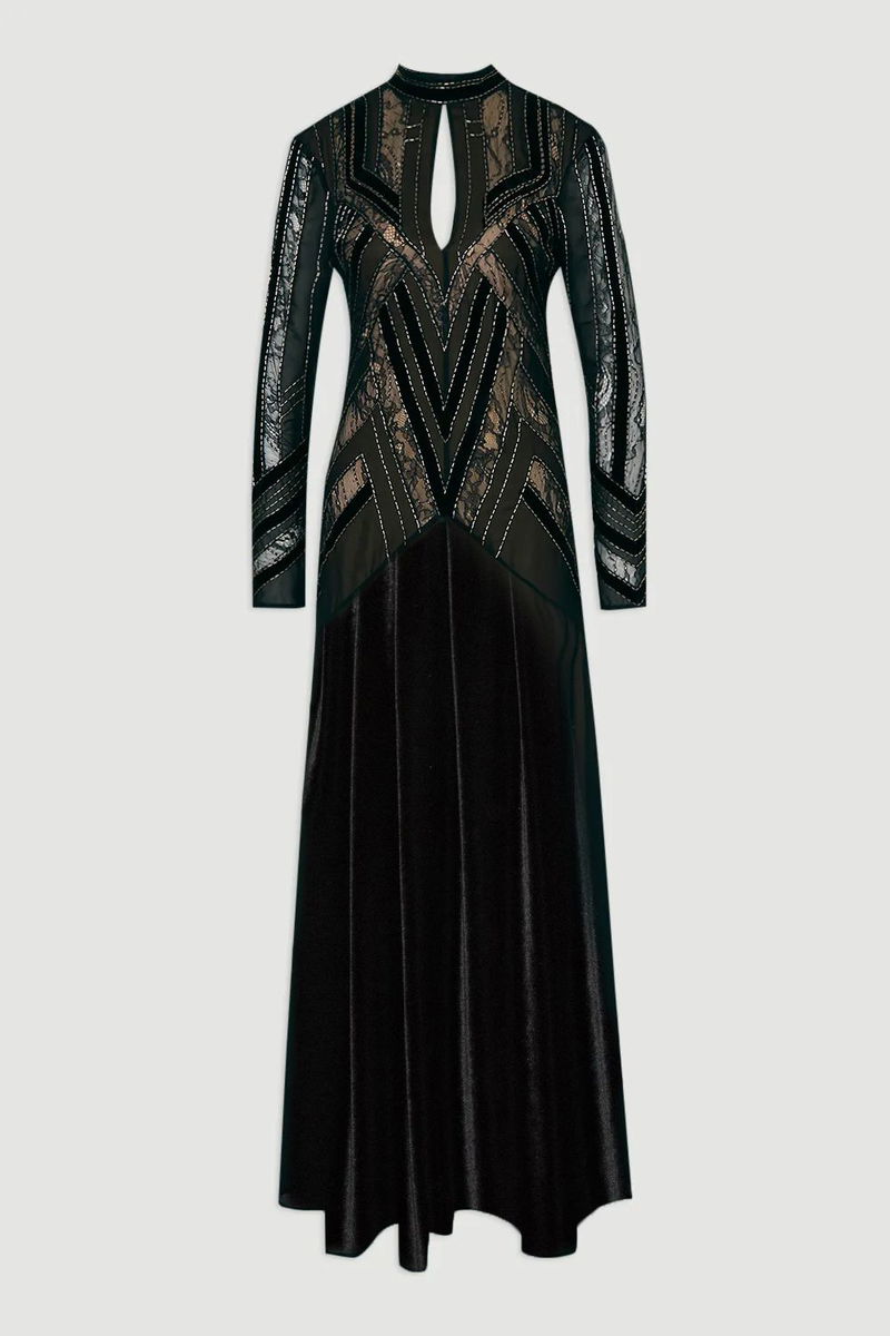 Velvet Embellished Long Sleeve Maxi Dress