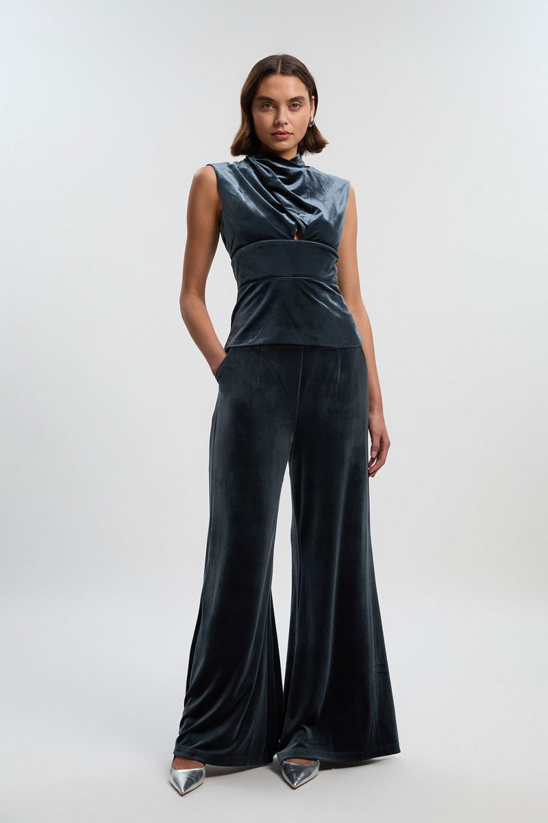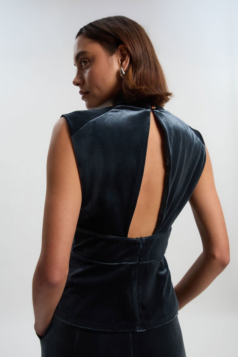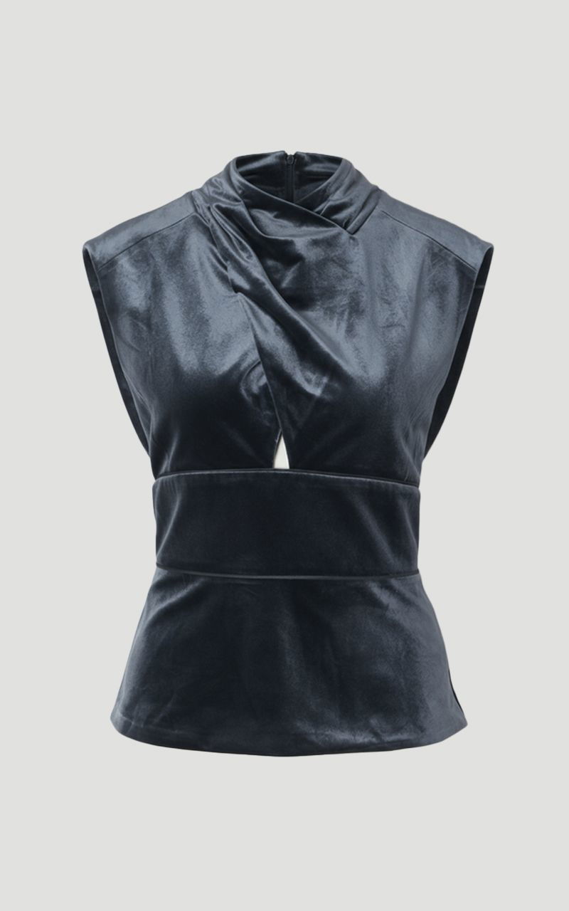 Velvet Wrap Detail Woven Top