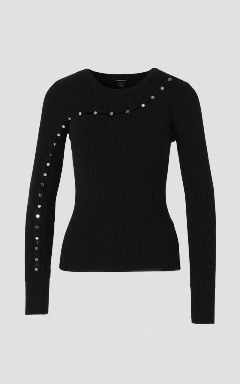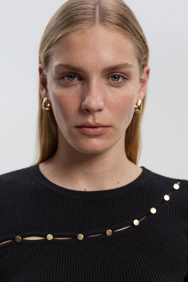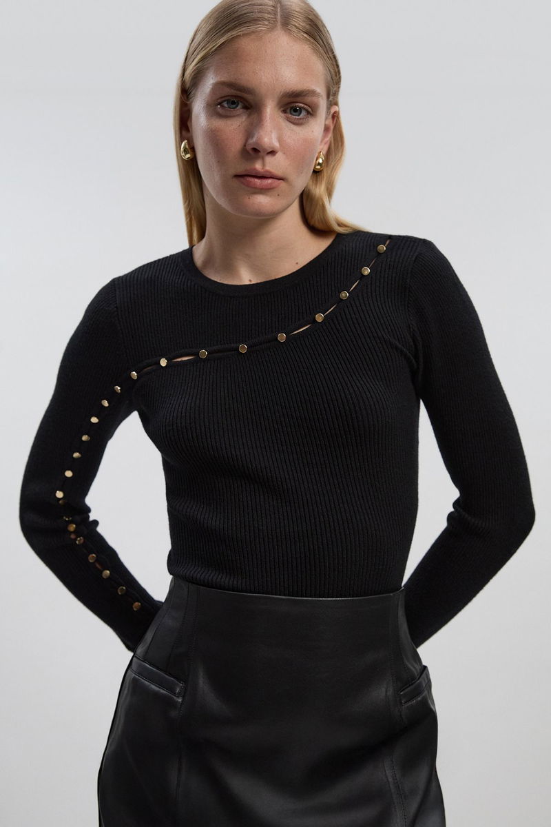 Viscose Blend Cut Out Trim Detail Knit Top