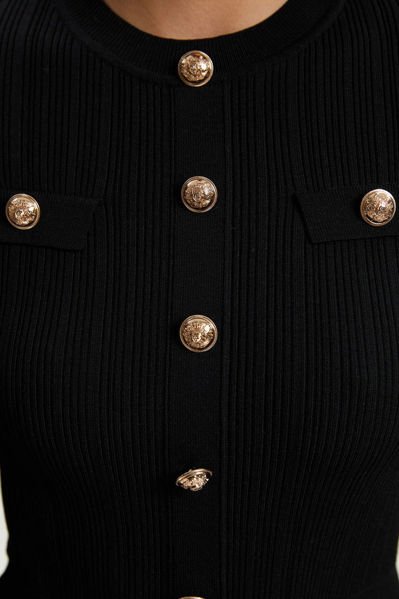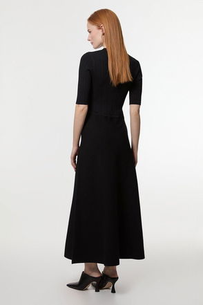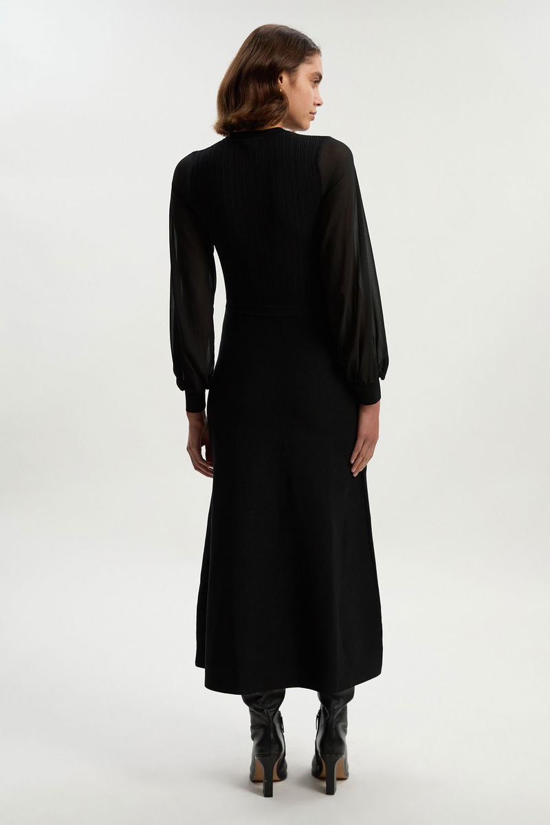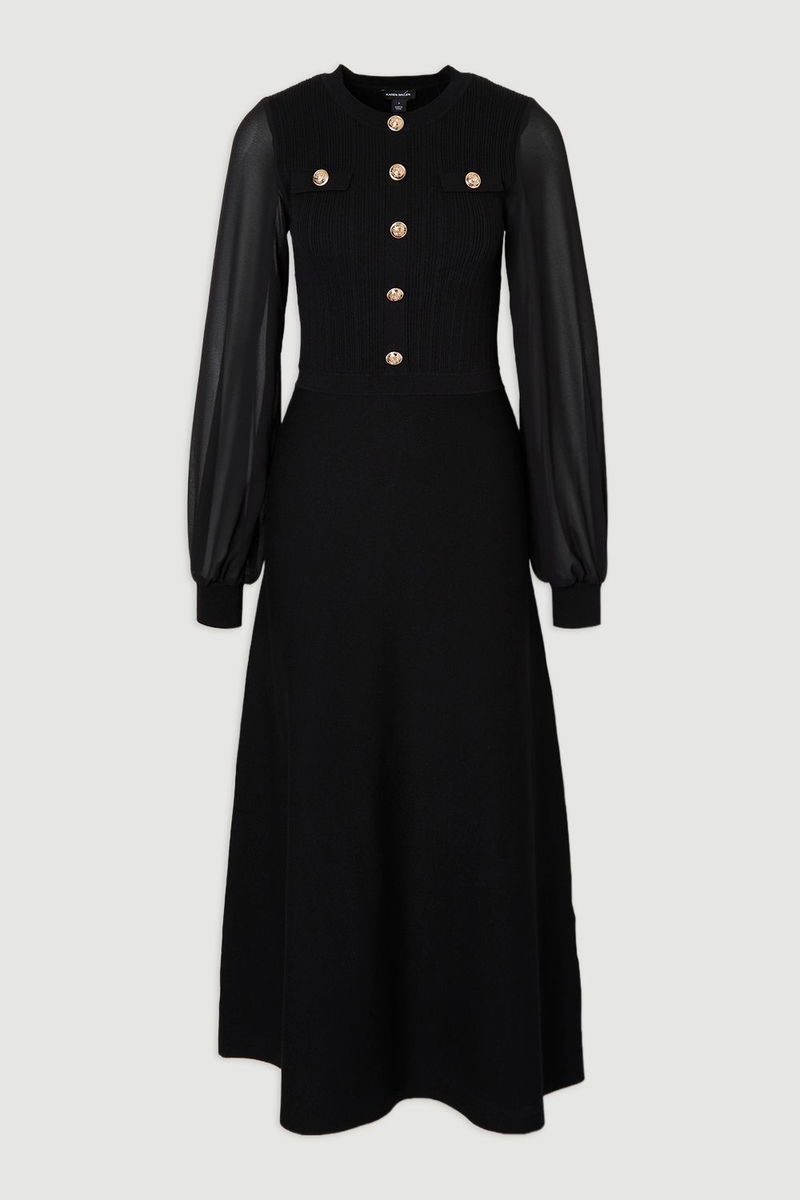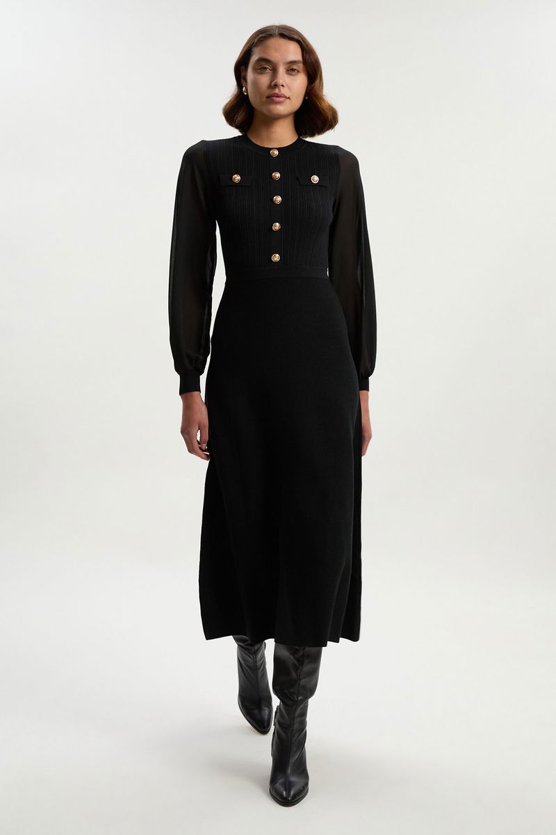 Viscose Blend Maxi Knit Dress With Chiffon Sleeve Military Trim