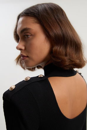 Viscose Blend Mini Knit Dress With Chiffon Sleeve Military Trim.
