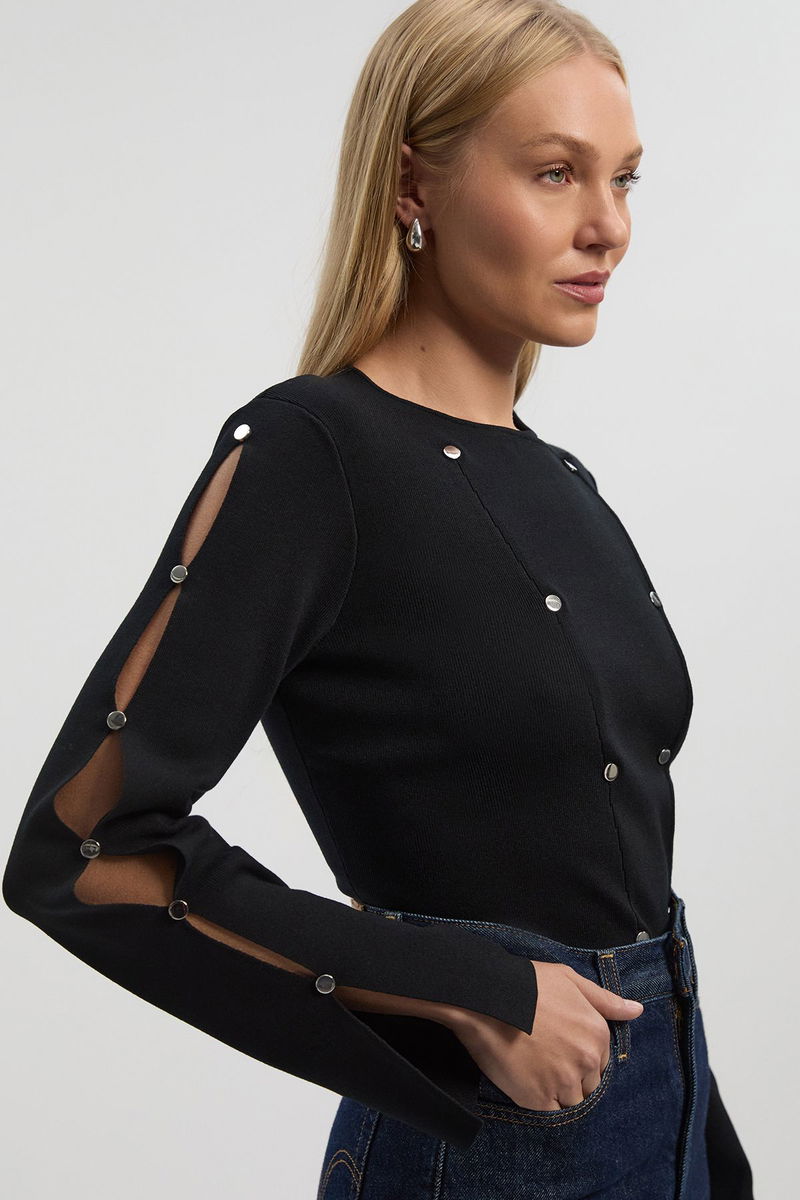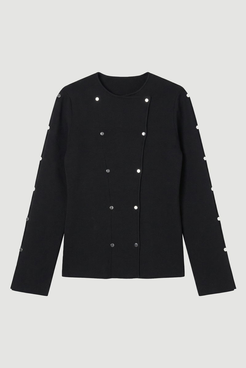 Viscose Blend Stud Detail Long Sleeve Knit Top