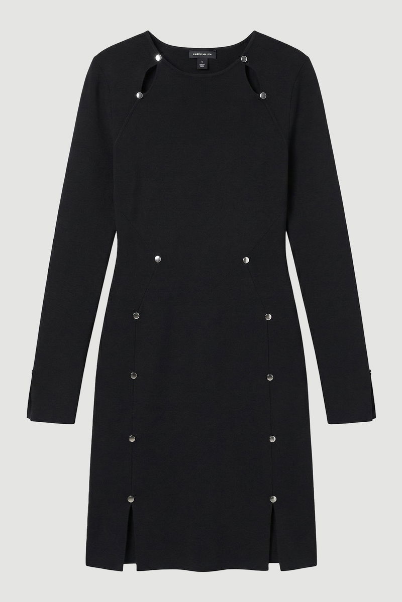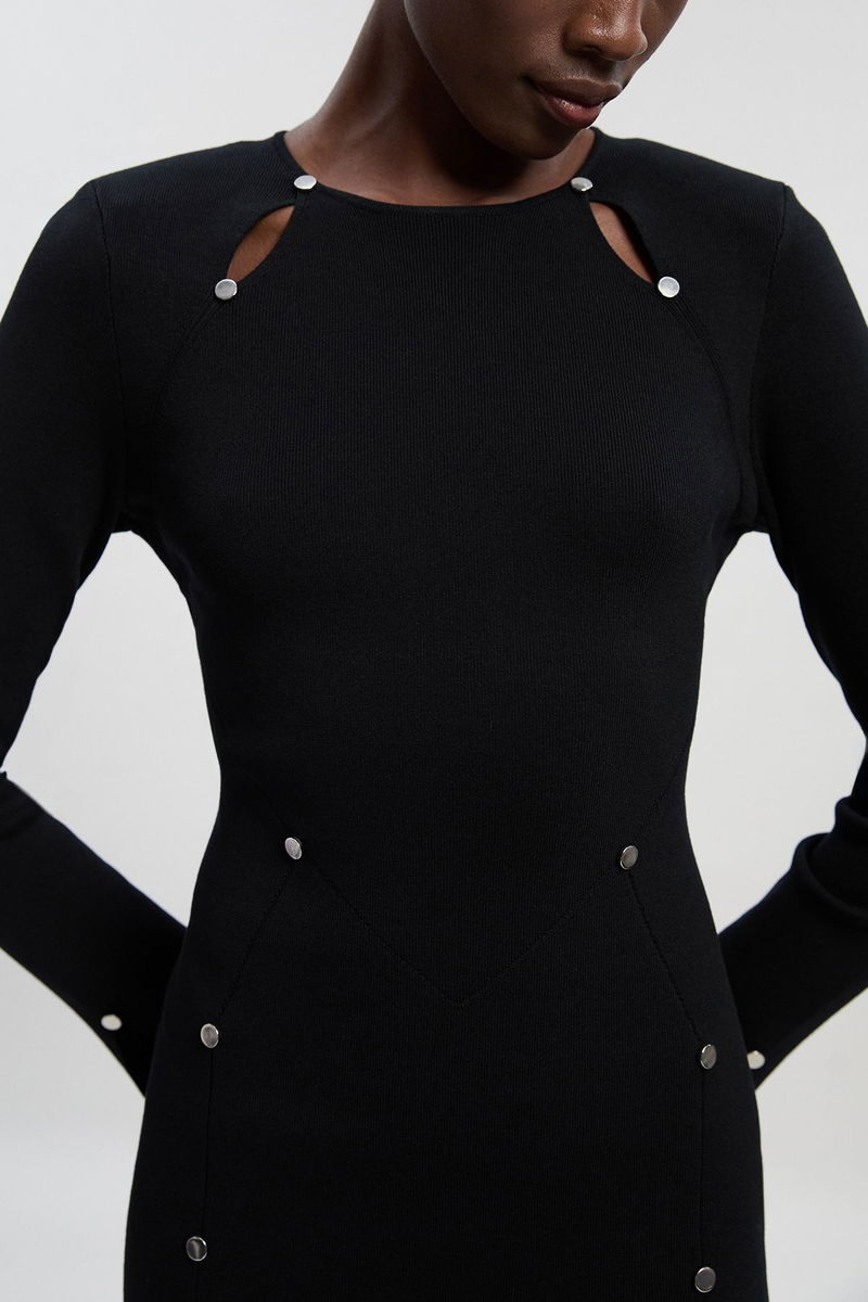 Viscose Blend Stud Keyhole Detail Knit Mini Dress