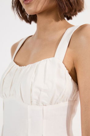 Viscose Linen Scenic Placed Print Strappy Woven Midi Dress.