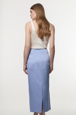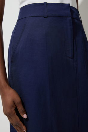 Viscose Linen Scenic Print With Top Stitch Woven Maxi Skirt.