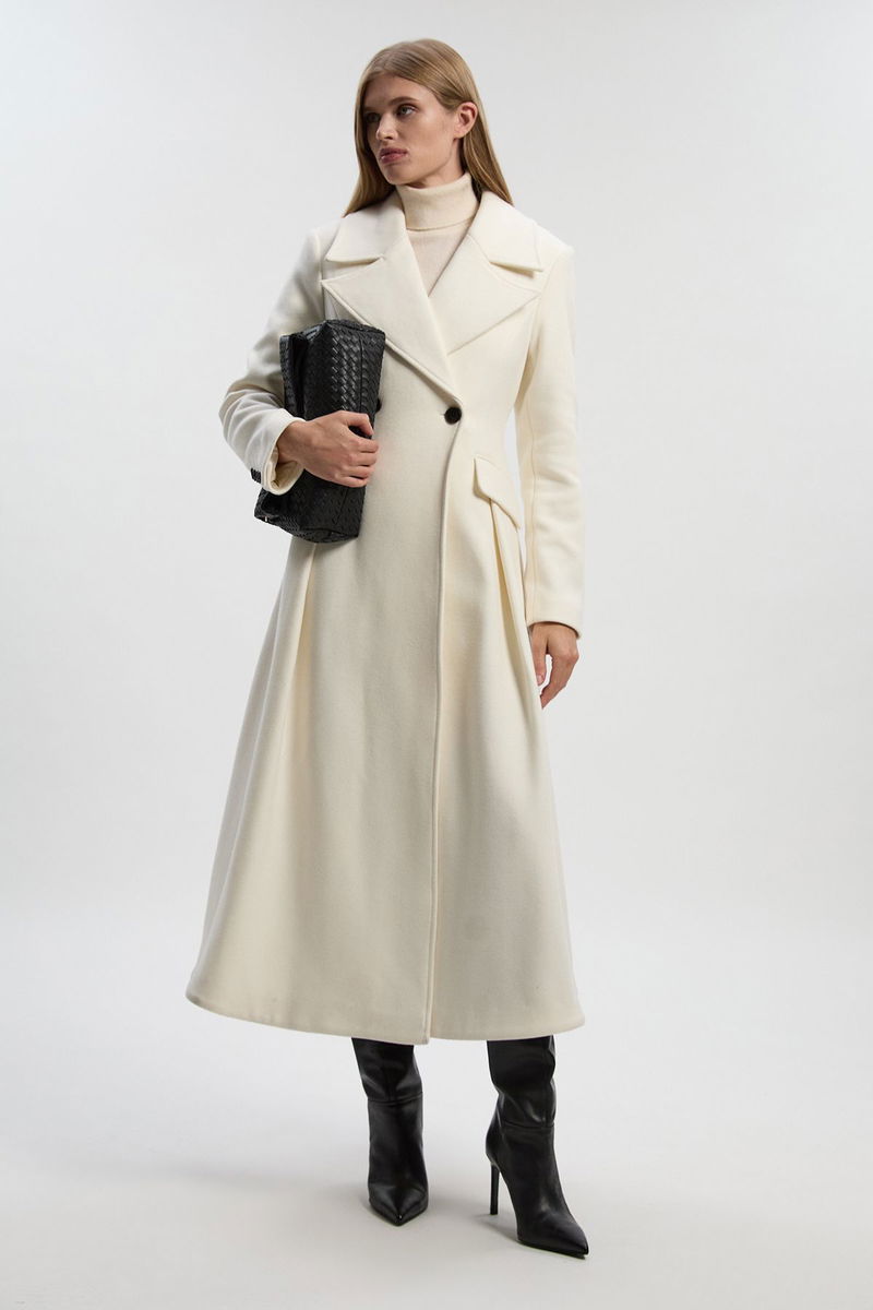 Wool Tailored Flared Skirt Midi Coat