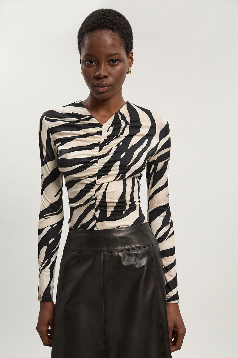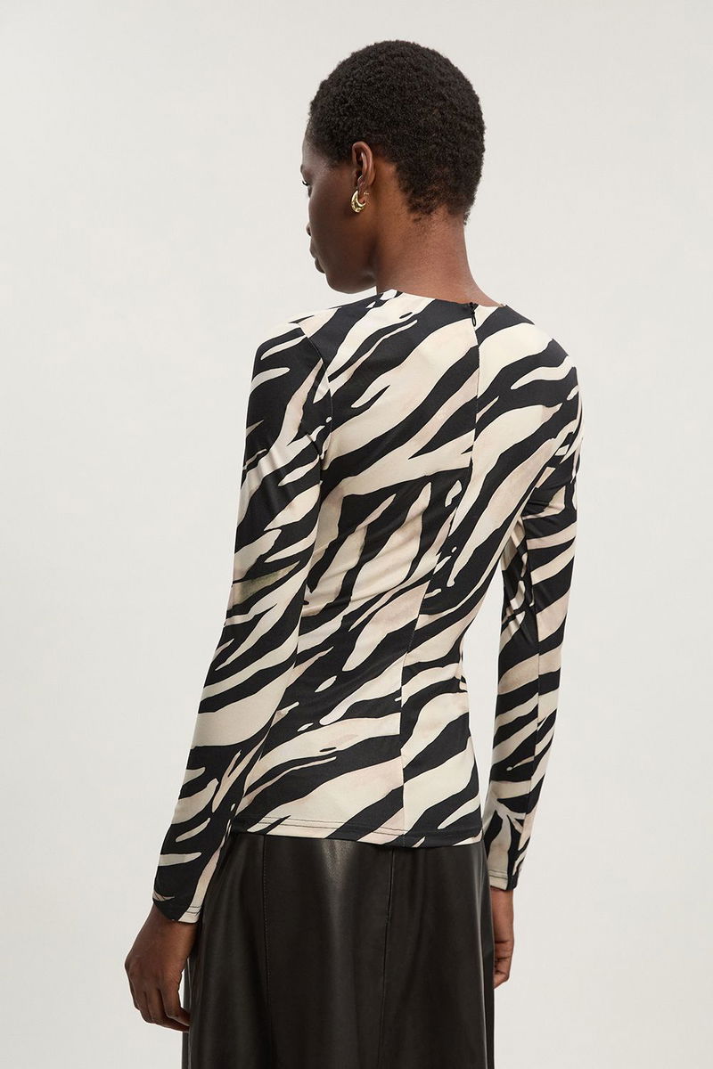 Zebra Print Crepe High Neck Top