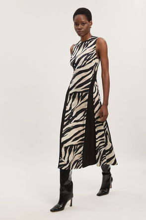 Zebra Print Crepe Twist Detail Maxi Dress