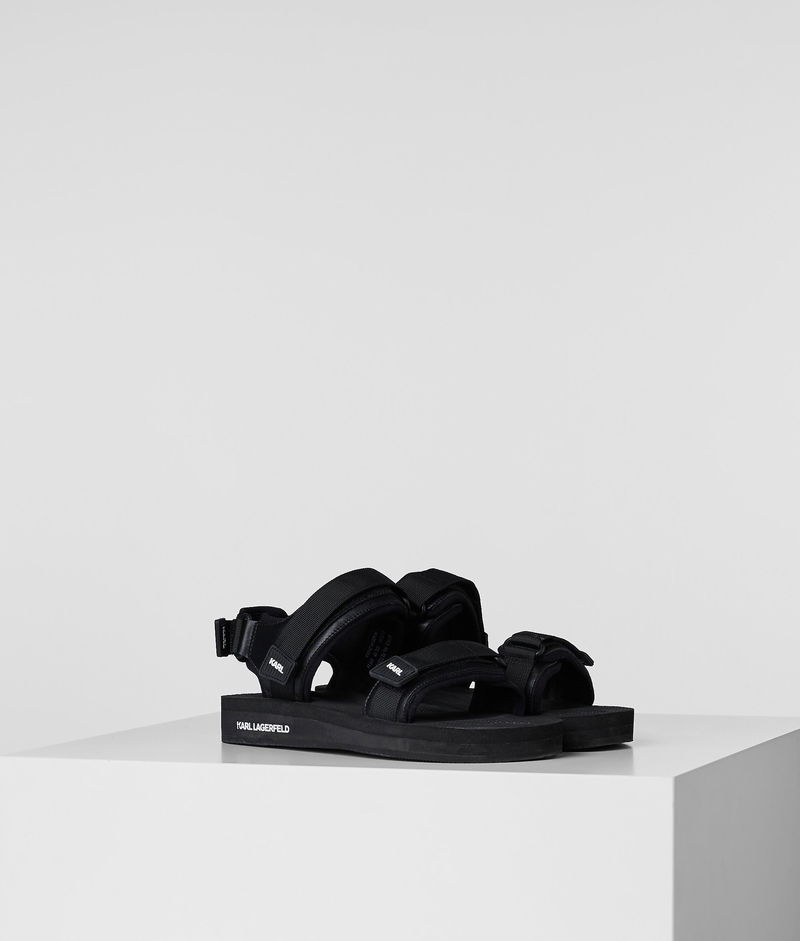 Sporty yet timeless sandal crafted from a leather and textile blend. Functional and stylish, topped with KARL logos on straps and outsole.