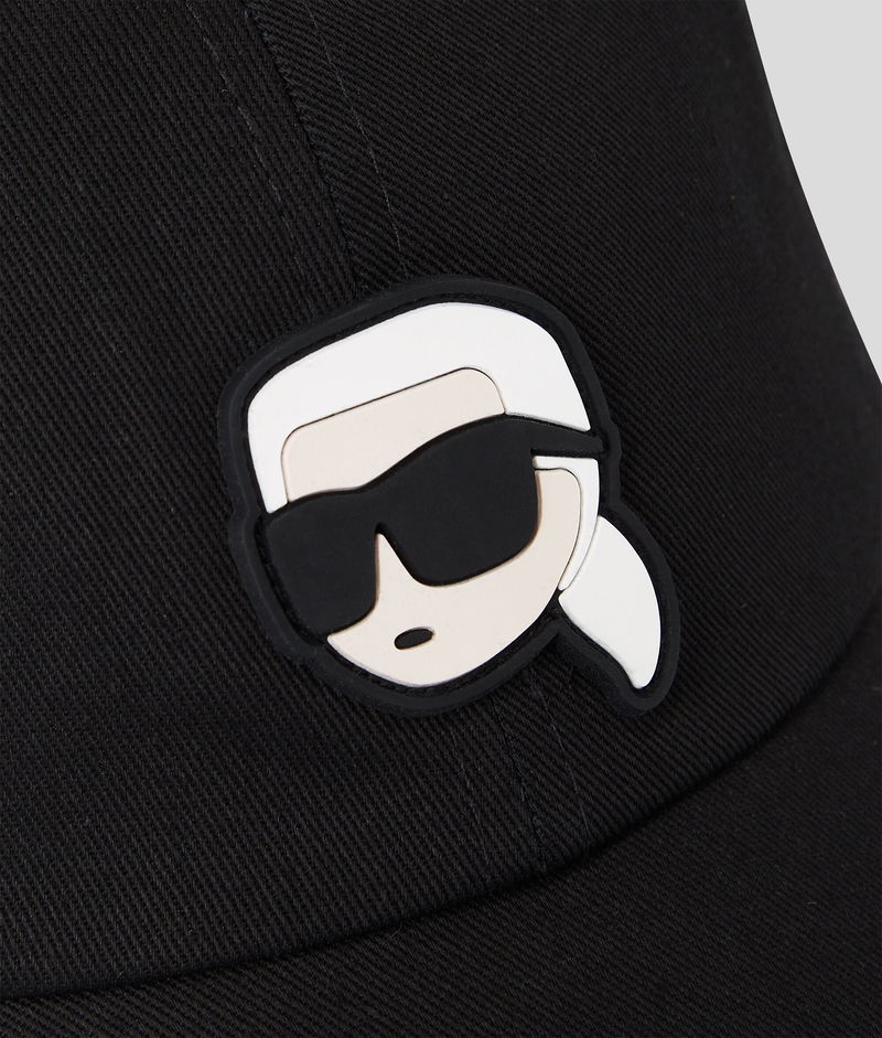 New generation Ikonik Karl artwork gives a playful twist to this classic baseball cap. Crafted from premium recycled materials, the off-duty staple features a curved peak and branded buckle for an adjustable fit.