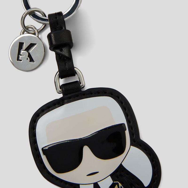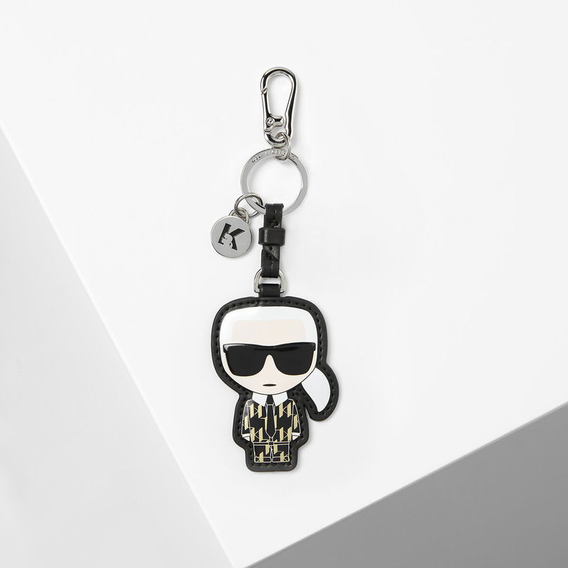 Ikonik Karl, dressed in a gold-toned monogram-embellished suit, features in this playful keychain. The playful accessory is further enhanced by a Choupette hanging charm, K initial coin disc and a lobster clasp attachment.