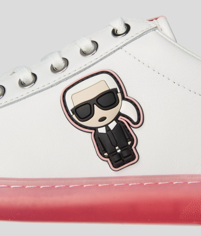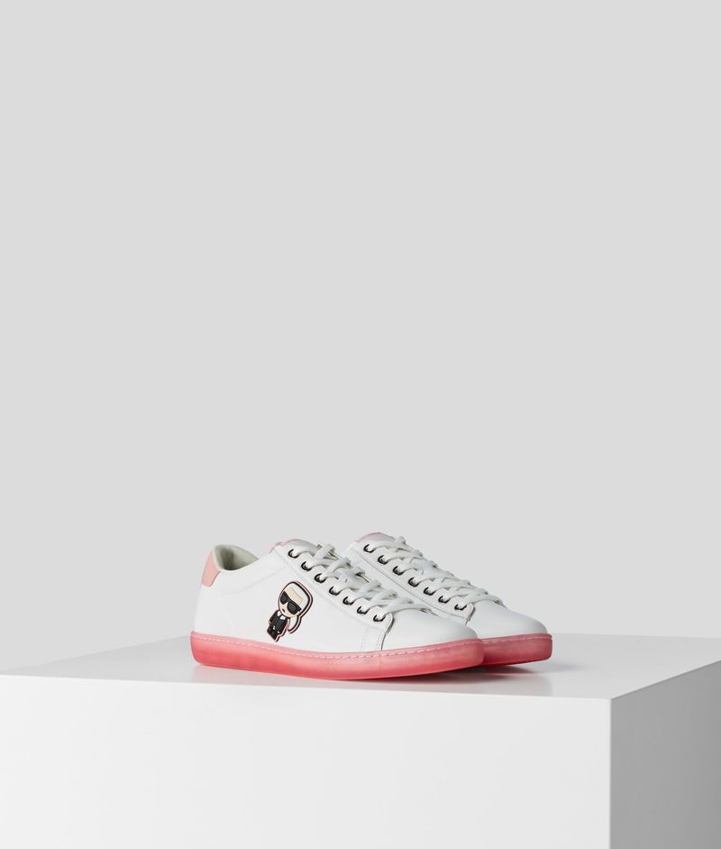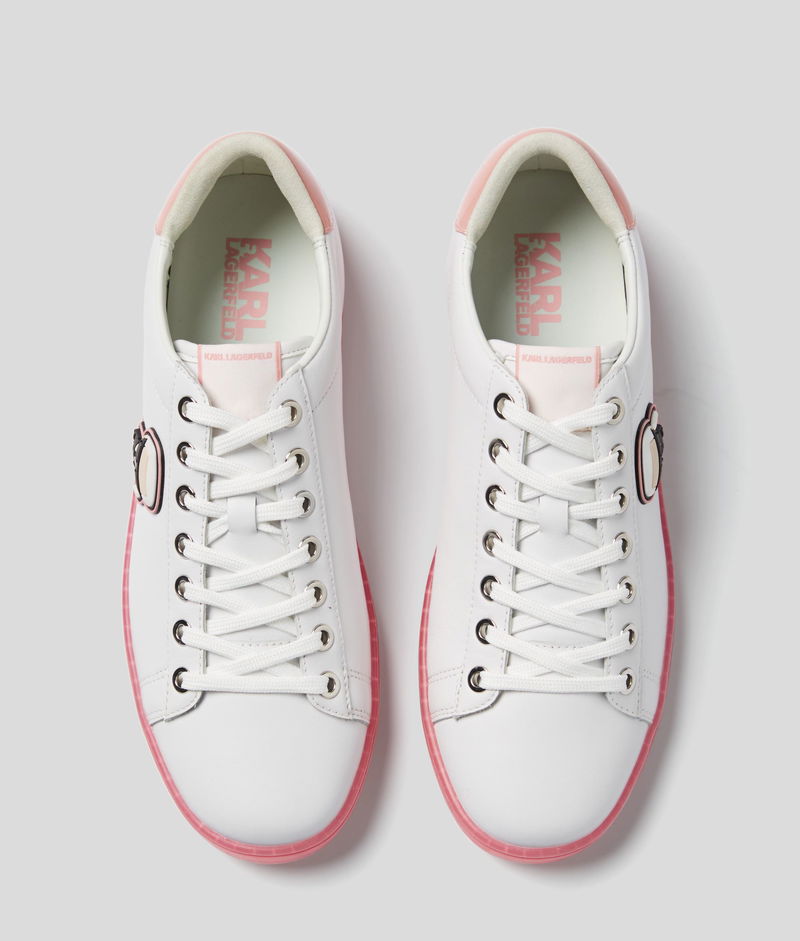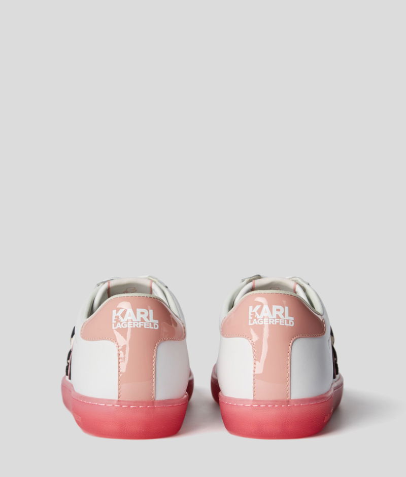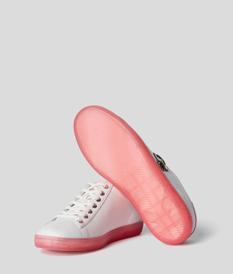 The graphic rubber patch of Karl Lagerfeld turns the iconic cupsole sneaker into a minimalistic statement piece. A playful colour on heel counter and cupsole frames the classic silhouette.