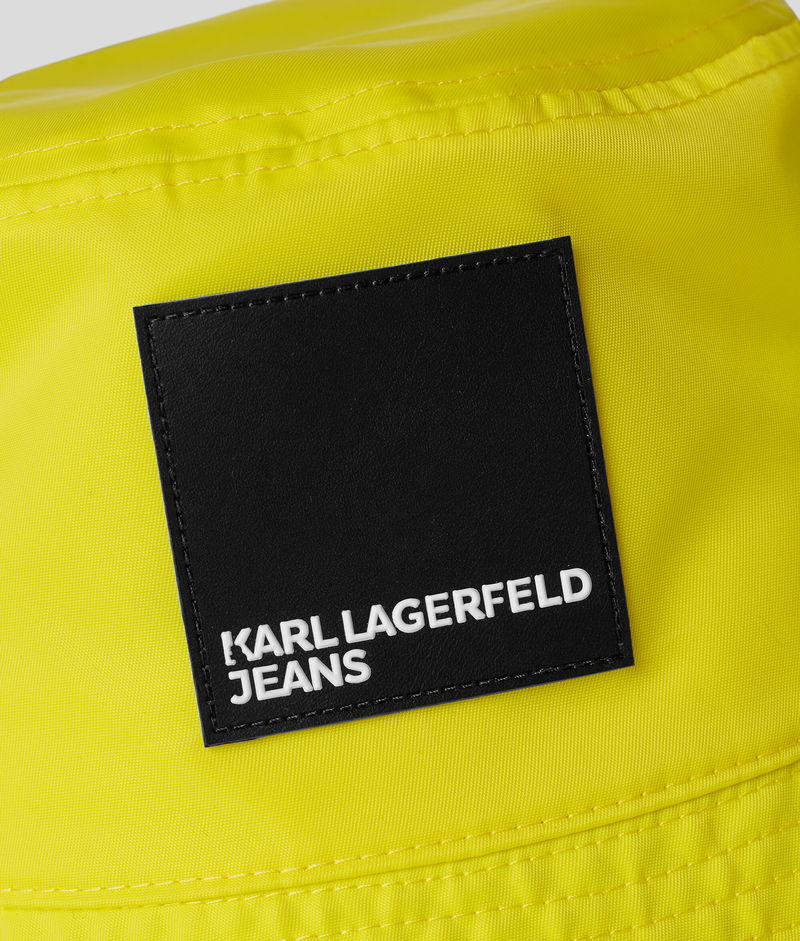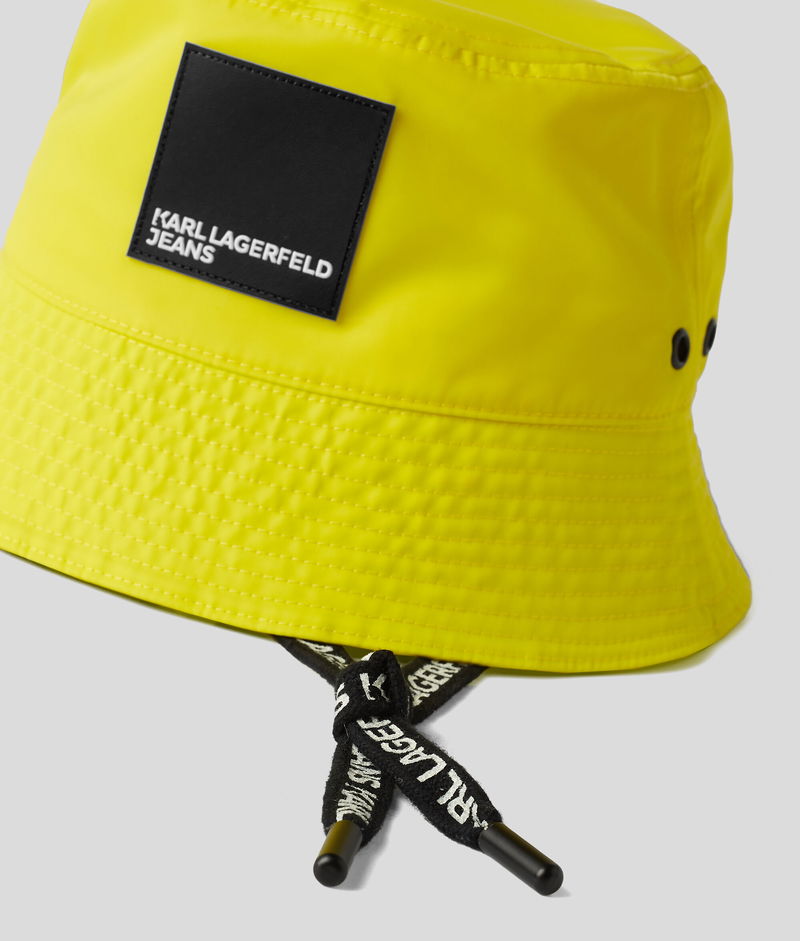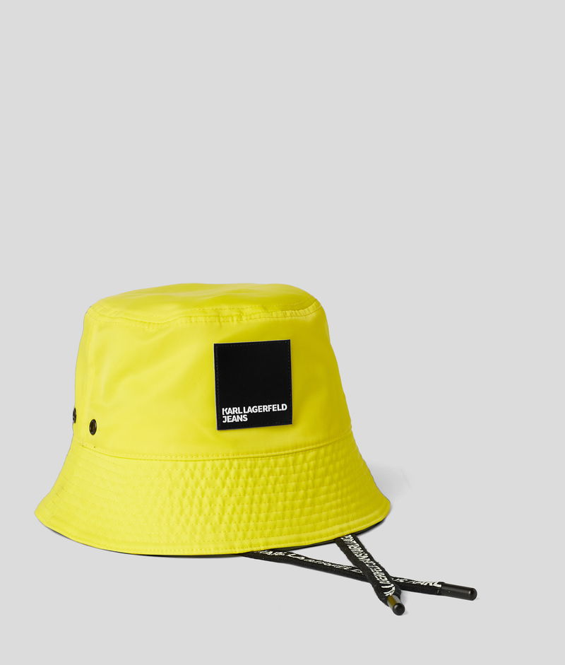 Come rain or shine, this KLJ bucket hat with a rubber box logo at the front tops off your look.